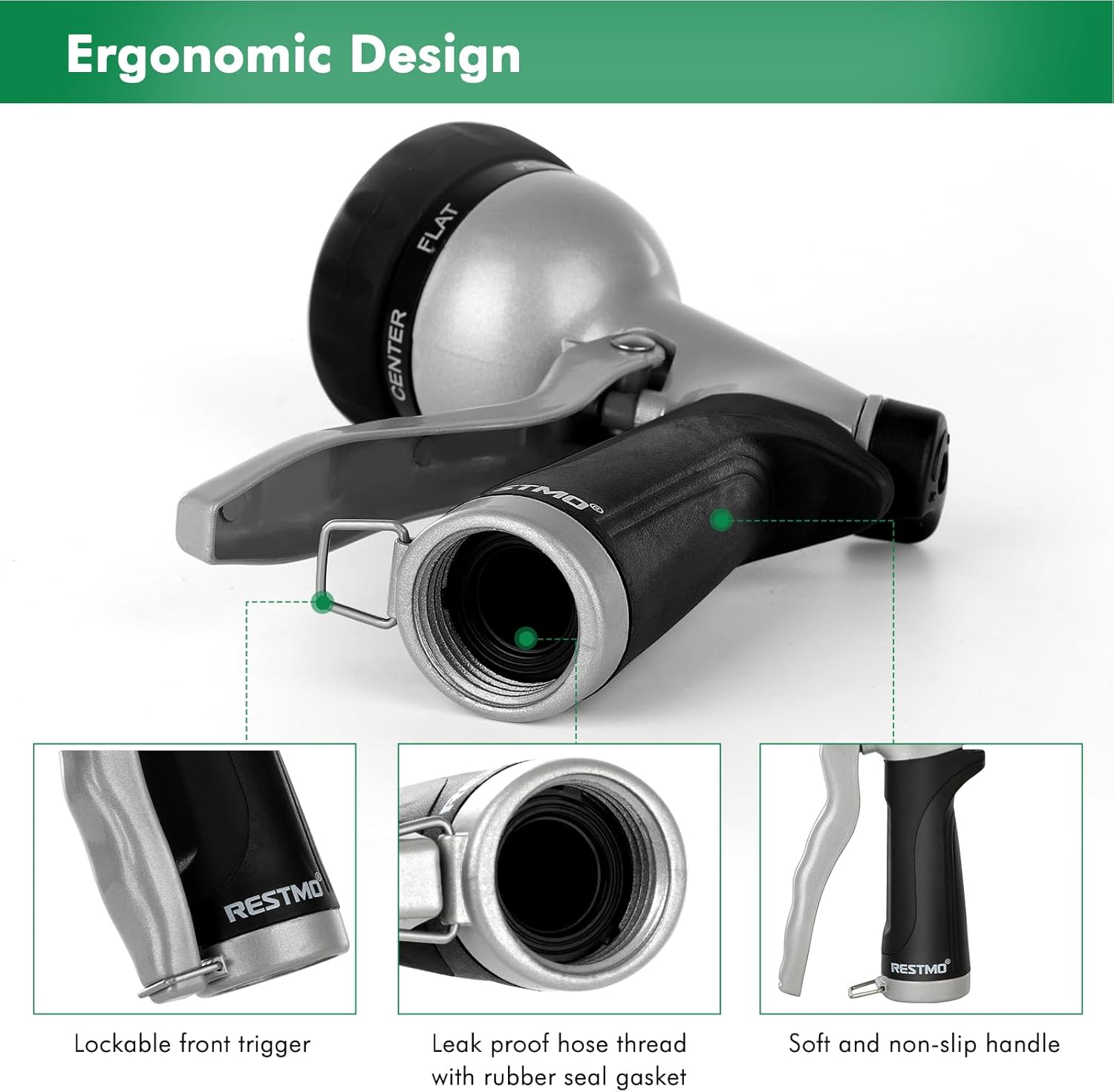 - ERGONOMIC DESIGN: Coated with the soft TPU and non-slip grip, this low-profile hose nozzle adds comfort and avoids hand fatigue. The pistol grip front trigger is easy to hold and can be locked anytime.