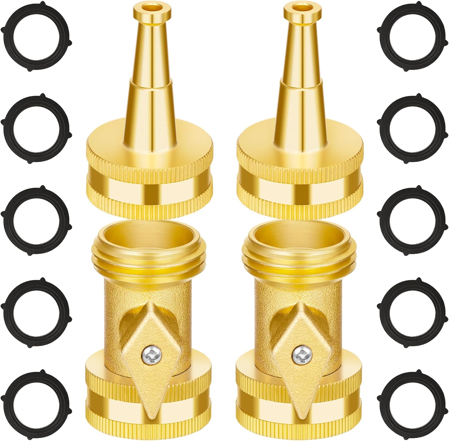 AUTOMAN Brass Hose Nozzle - High Pressure Jet Nozzle 4 Count (2 Set), Heavy Duty Water Hose Sprayer Sweeper with Hose Shutoff Valve, 3/4” GHT Nozzles for Garden Hose, Car Wash, Extra 10 Rubber Washers