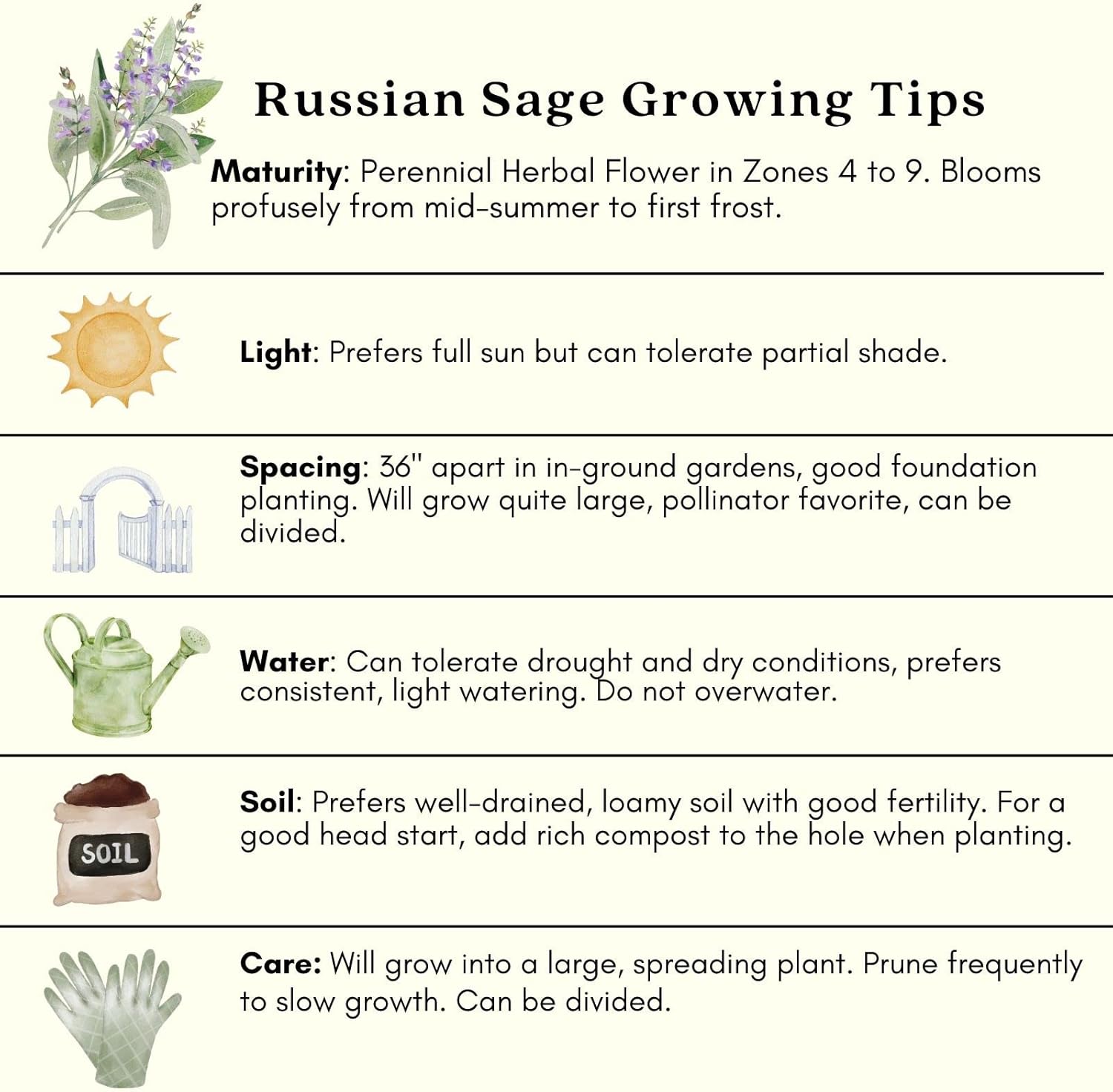 Clovers Garden Russian Sage Plants – Two (2) Live Plants – Non-GMO - Not Seeds - Each 4" to 8" Tall – in 4" Inch Pots – Hardy Flowering Perennial, Pollinator Favorite