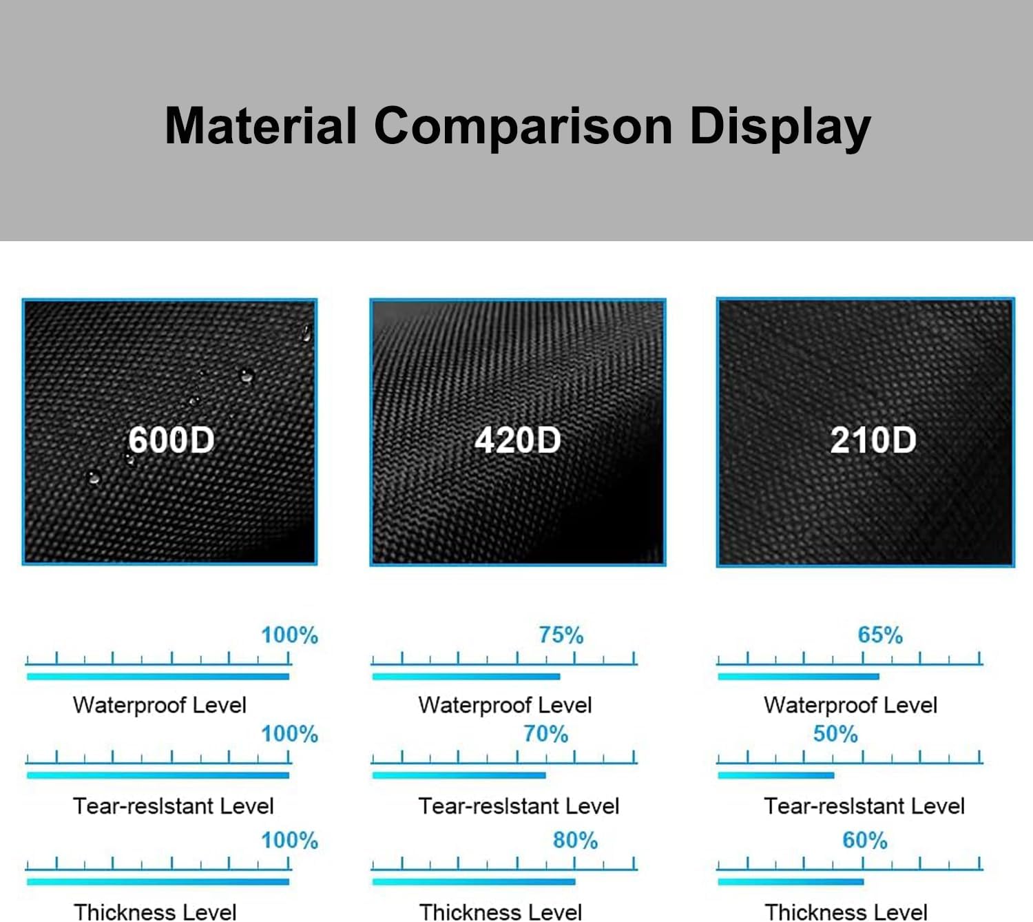 - Material: The Grill Cover is made of 600D high-density oxford fabric with an internal PVC coating, can protect your grill from strong winds, storms, sunlight, snow, dust, and debris, durable and long-lasting. Has good UV resistance, color fastness, waterproofing, low temperature resistance, and tear resistance functions.