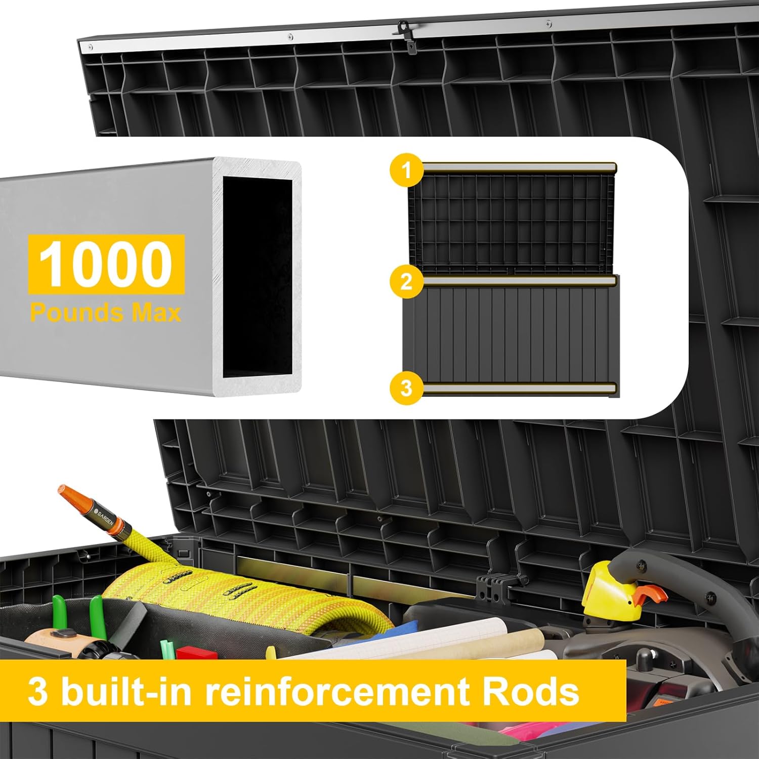 Deck Box - 230 Gallon Large Outdoor Storage box,Waterproof Patio Furniture and Storage Deck - Lockable and UV Resistant, Perfect for Pool and Outdoor Use, Weatherproof Resin, Lockable (Black) -