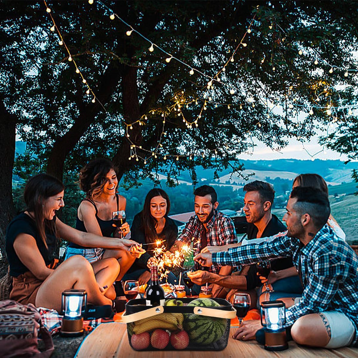 Portable Mesh Harvest Basket - Natural Bamboo Handle Foldable Organizer for Kitchen, Garden & Picnic | Ventilated Storage Bin with Rust-Proof Wire, Space-Saving Farmhouse Decor (Black)