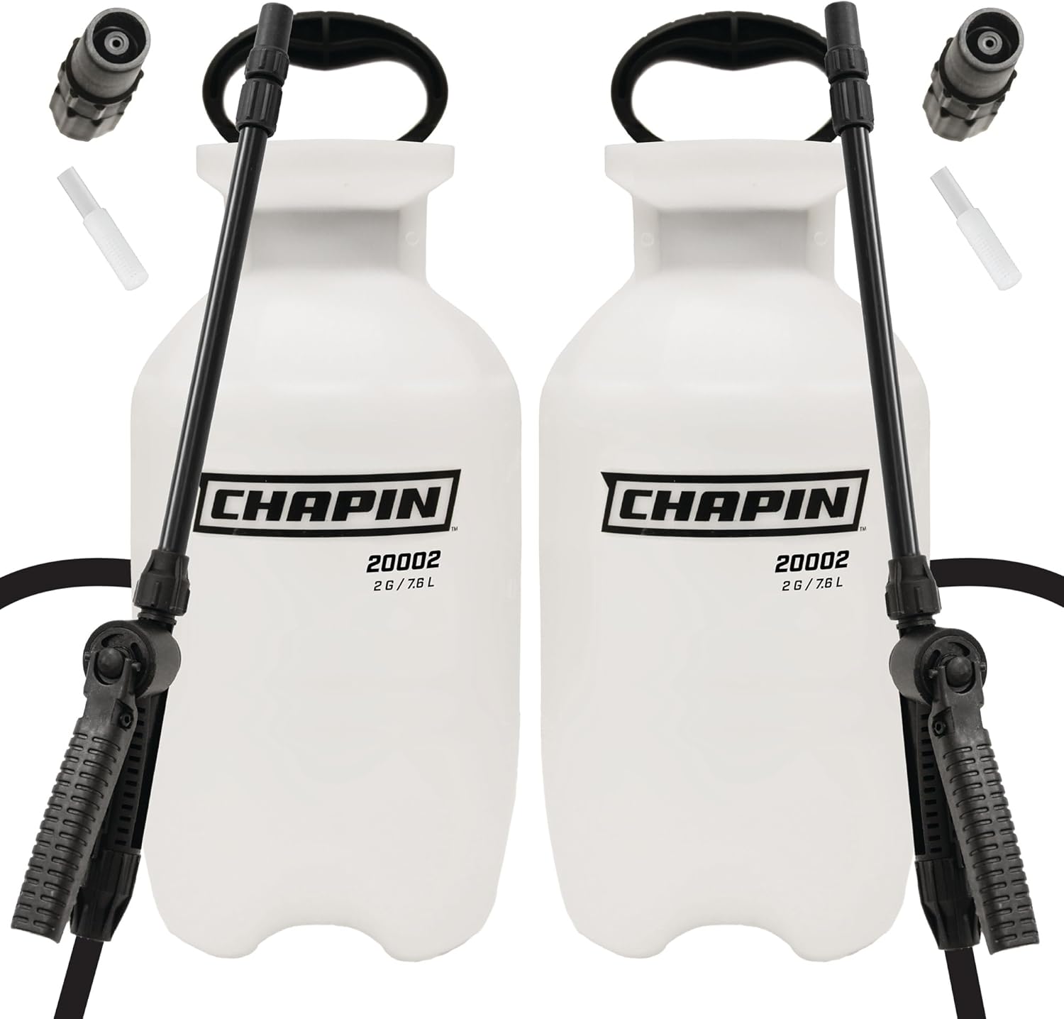 Chapin 20024: Value Pack, 2-Pack, 2-Gallon SureSpray Lawn and Garden Poly Tank Sprayer with Anti-Clog Filter for Yard, Lawn, Weeds, and Plants, Translucent White