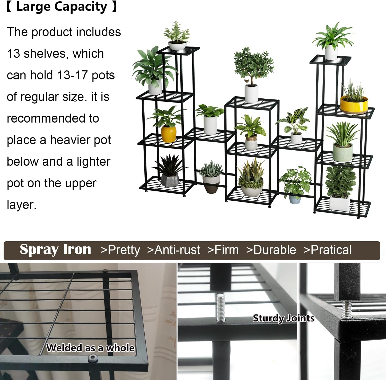 Tall Multi Tier Plant Stand, 13 Tiers Multifunctional Plant Stands for Indoor Plants, Decorative Black Steel Plant Shelf for outdoor Patio Garden Balcony and Yard