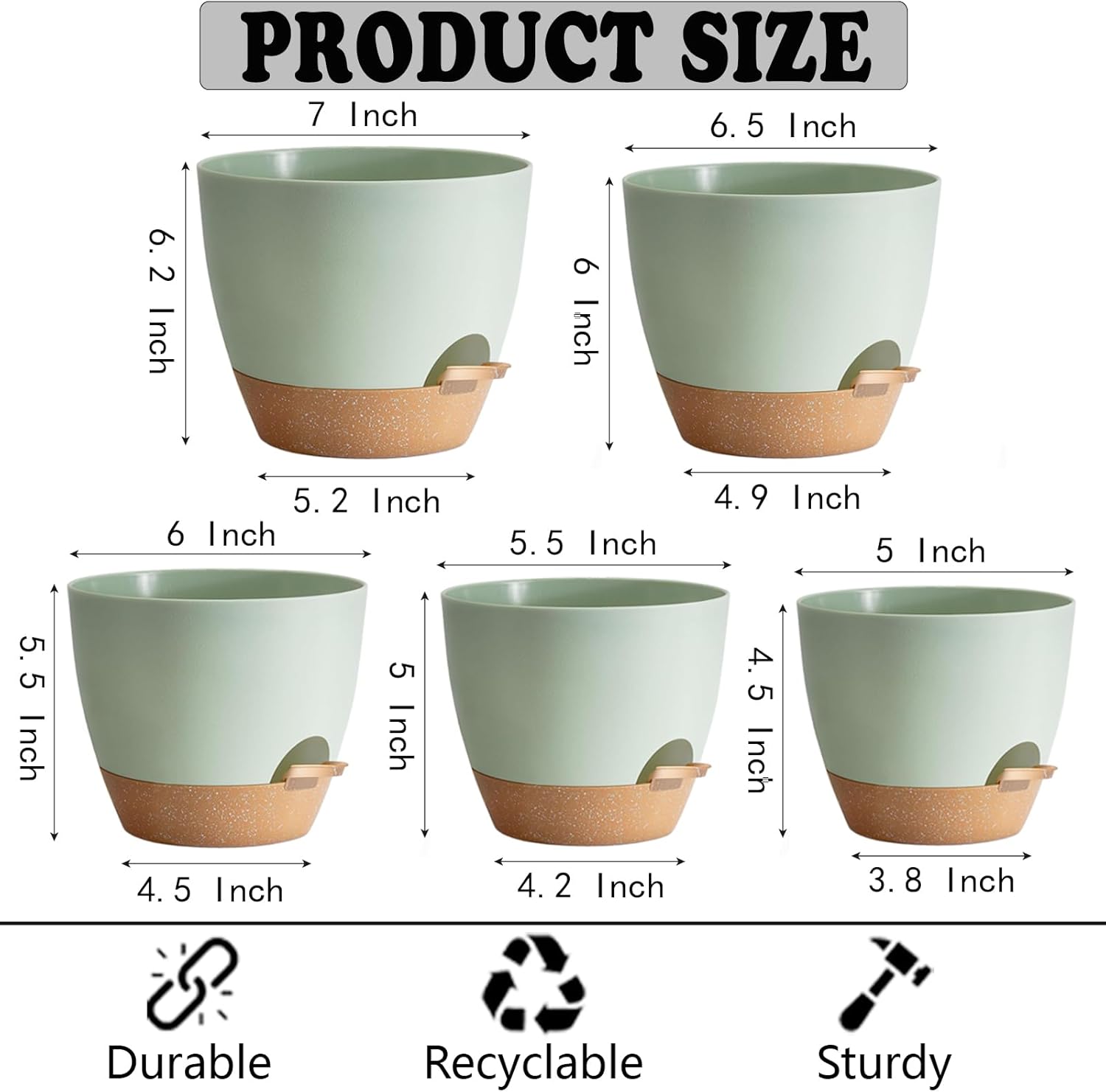 Indoor Plant Pots With Drainage Holes and Saucers Planting Pots for All HousePlants Green Plastic Flower Pots with Drainage Hole Self Watering Plant Pot Gift Idea For Home Decor Succulent Pots