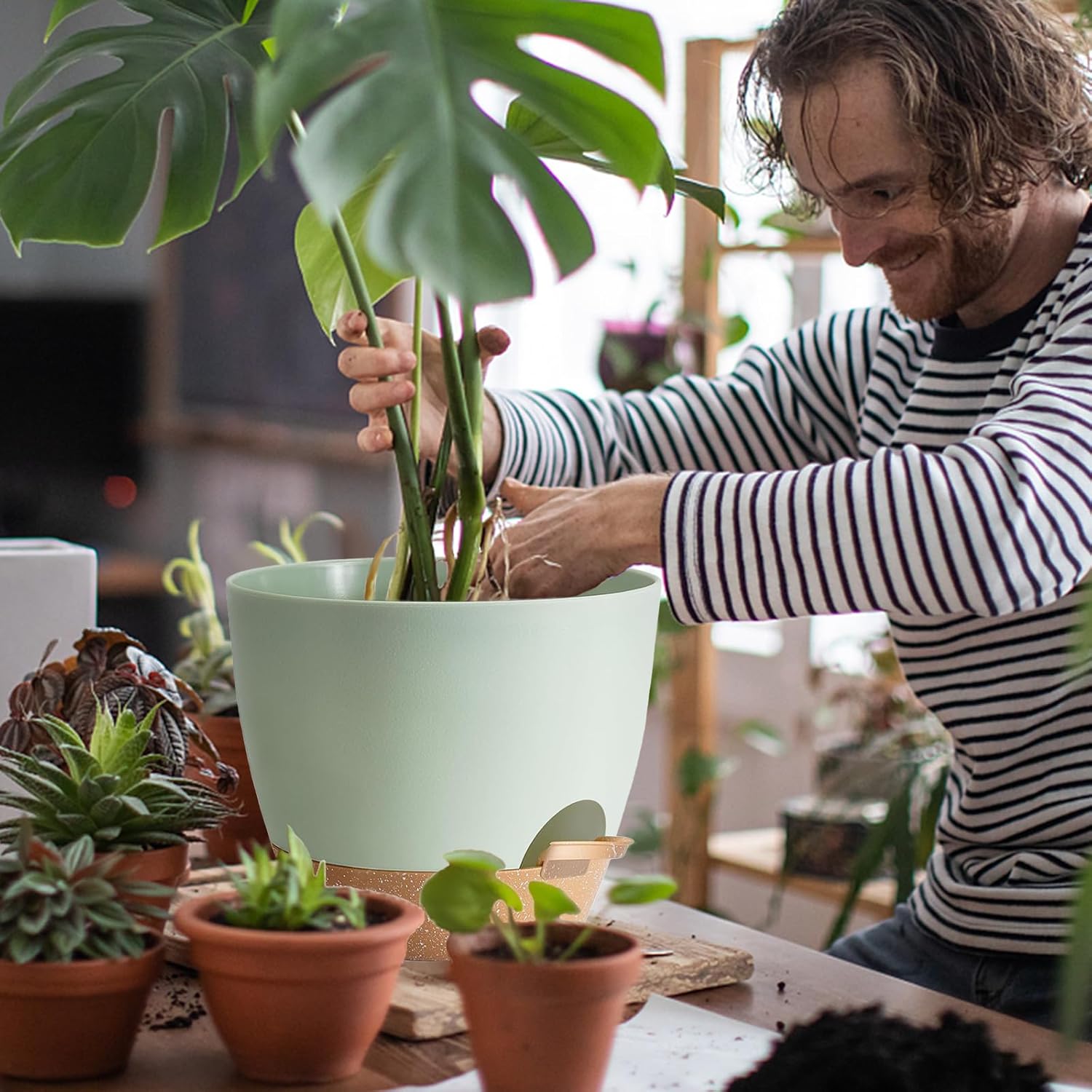 Indoor Pot For Plants 3 Pack 12/10/9 Inch Self Watering Pot For Lazy People,Self Watering Pots For Indoor Plants,Outdoor Pots For Succulent, African violets And Cactus Green Plastic Flower Pots
