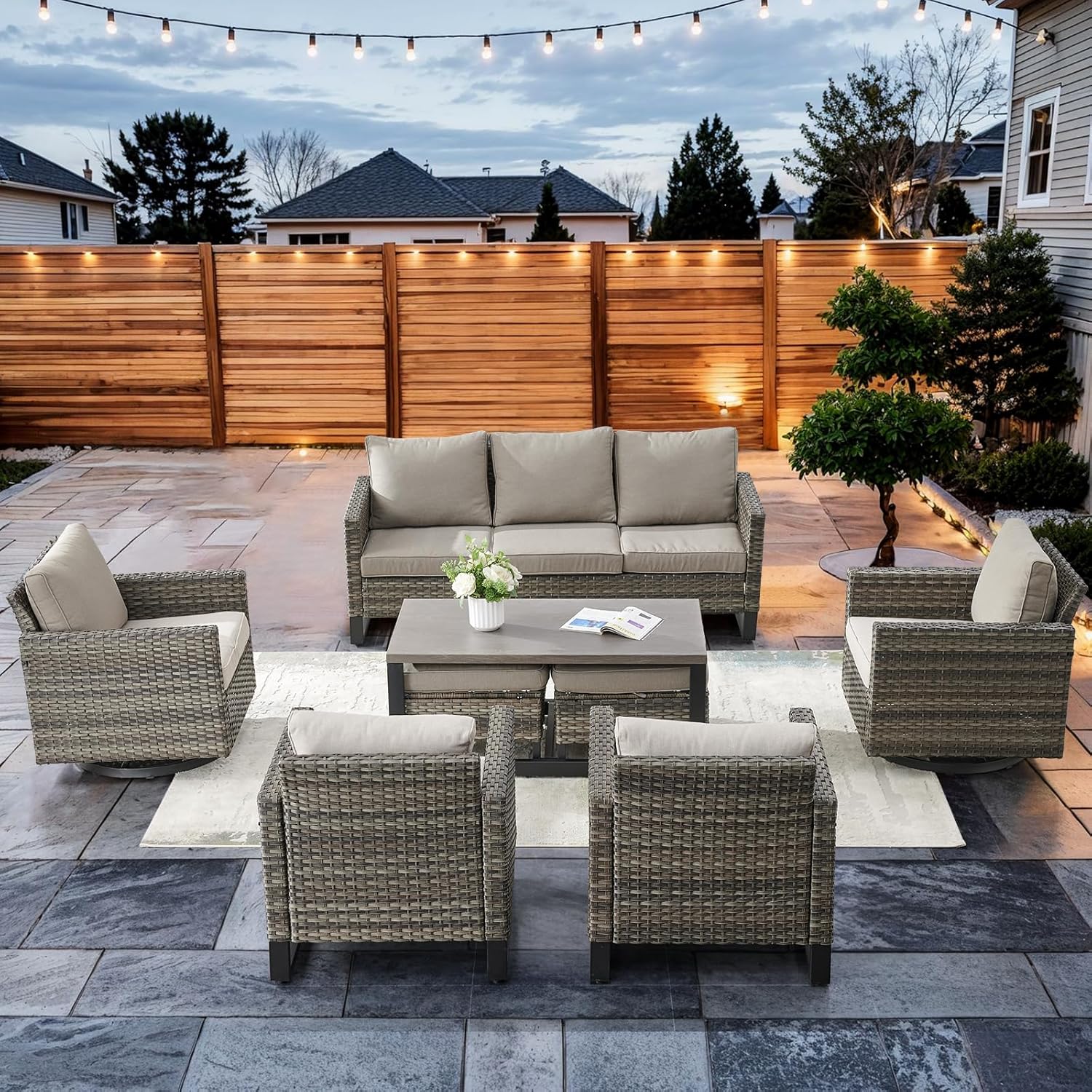 HUMMUH 8 Piece Patio Furniture Set All Weather Wicker Outdoor Sectional Sofa with Patio Chairs,Patio Swivel Glider Chairs Ottomans Coffee Table for Porch,Garden,Backyard