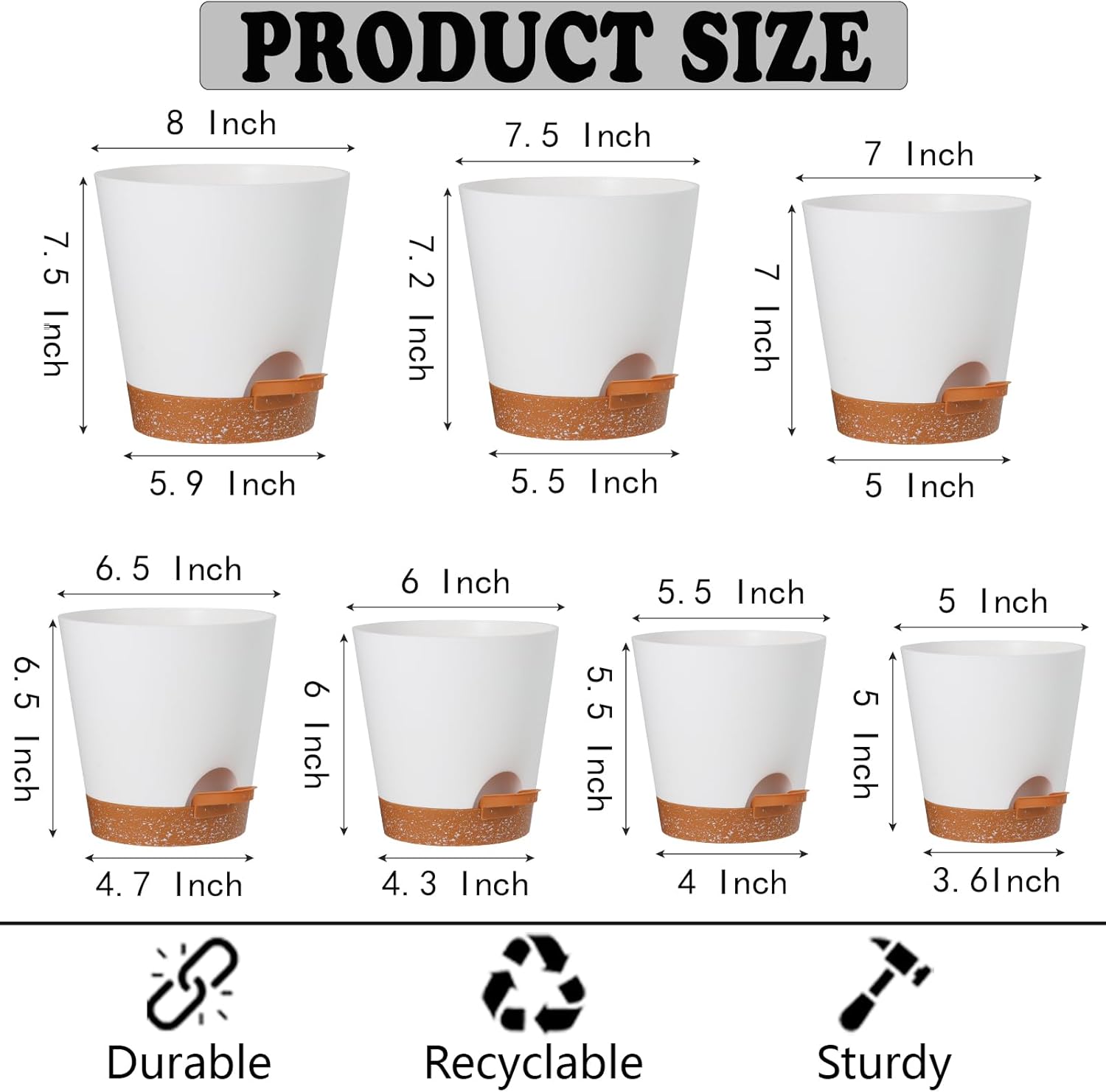 Plant Pots Outdoor 8/7.5/7/6.5/6/5.5/5Inch 7Pack, Planting Pots for All House Plants White Plastic Planters Outdoor Flower Pots Nursery Planting Pot with Drainage Hole and Deep Reservoir