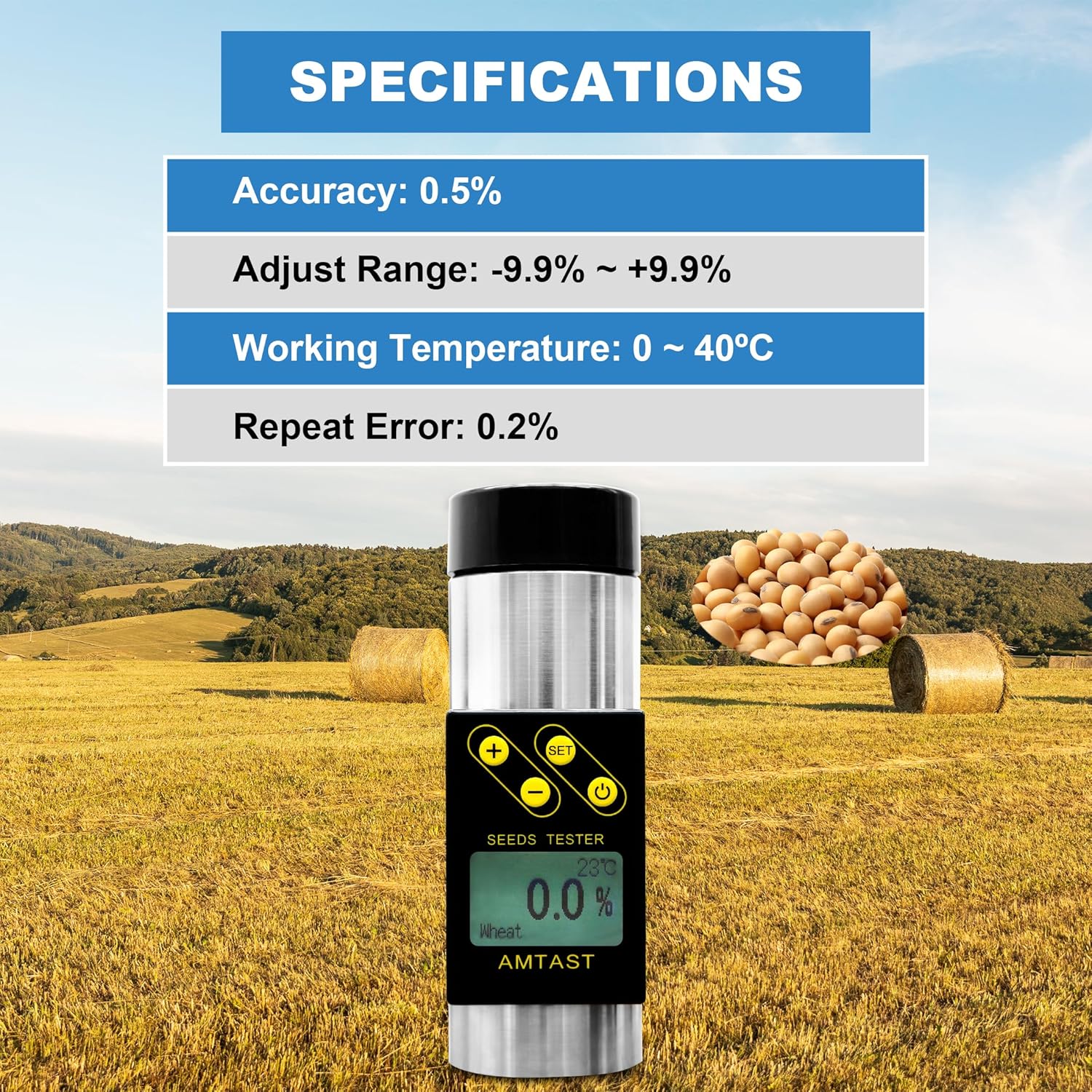 - ππππ πππππππππ - The seed moisture meter is designed for ease of use, offering both automatic and manual temperature compensation (ATC and MTC). This feature allows users to achieve consistent and accurate readings regardless of temperature fluctuations in the environment. Whether youβre conducting routine moisture checks or monitoring crop quality during harvest, the simple interface and easy-to-read results ensure minimal effort and maximum efficiency.