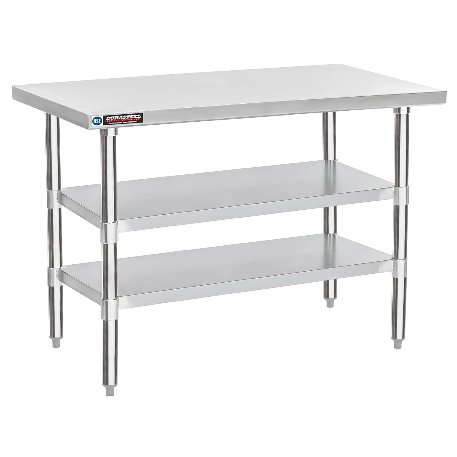 DuraSteel Food Prep Stainless Steel Table - 24 x 60 Inch Commercial Metal Workbench with Adjustable Under Shelf - NSF Certified - for Restaurant, Warehouse, Home, Kitchen, Garage
