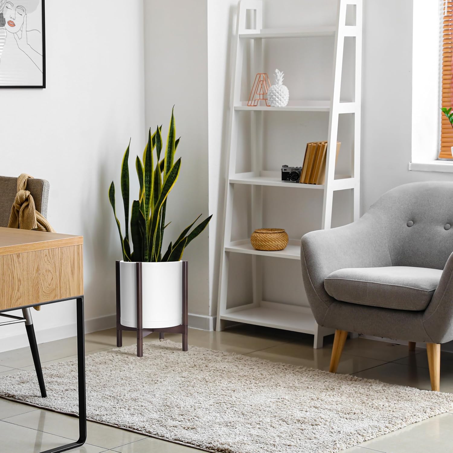 - Color : Matte White Pot + Walnut Color Stand