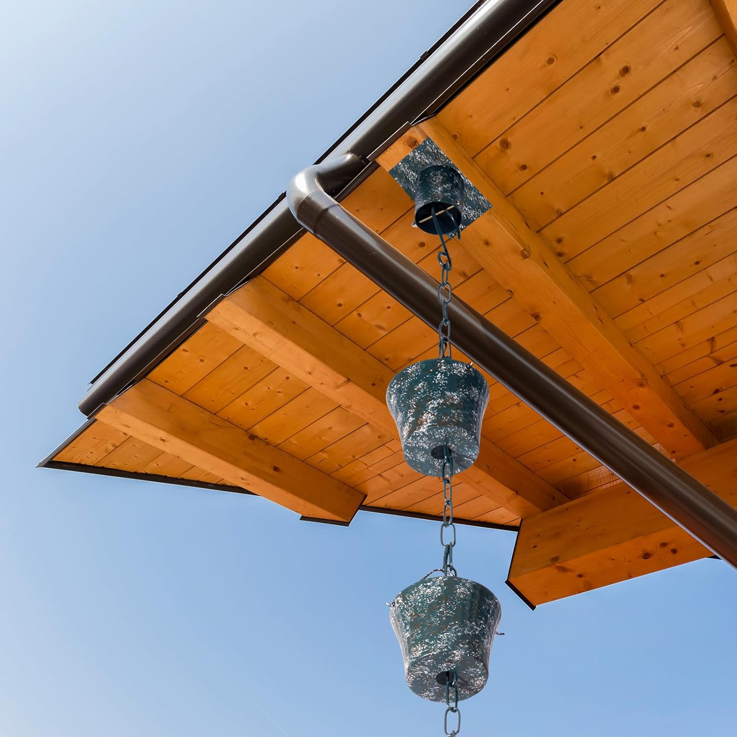 - Classic Looking Design:The standard length of the gutter rain chains is 8.5 FT. The rain chain is made of (larger size of 14 ,3.95 inch wide, 3 inch high cylindrical cups and chains) combined with each other, so beautiful that water flows down each cup on the rain chains, creating a beautiful water feature.