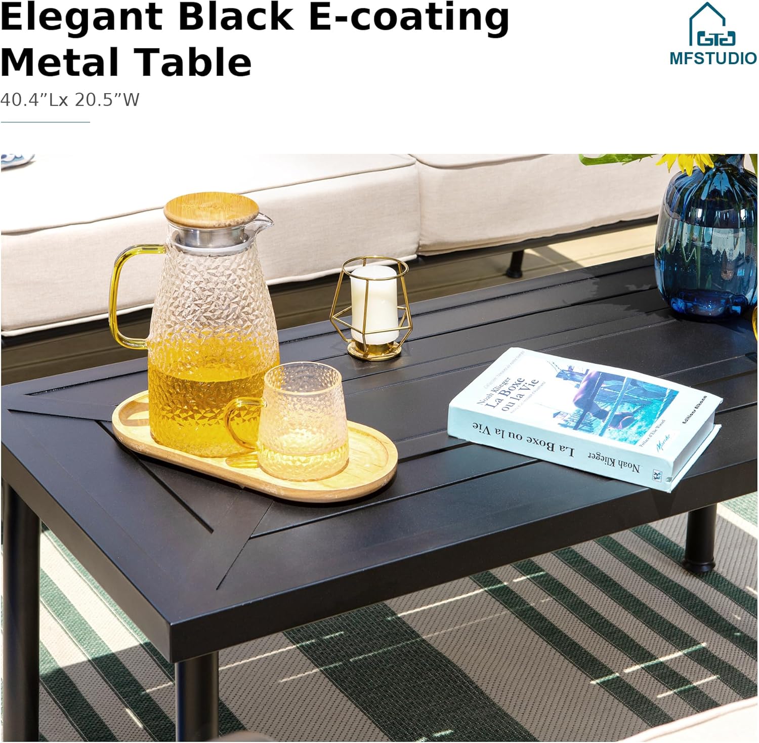 MFSTUDIO 7 Seats Large Metal Patio Conversation Sets, 6 Pieces Outdoor Furniture Sofa with 4 Swivel Chairs, 1 Sofa(3-seat) and Table for Outside Balcony Backyard Poolside