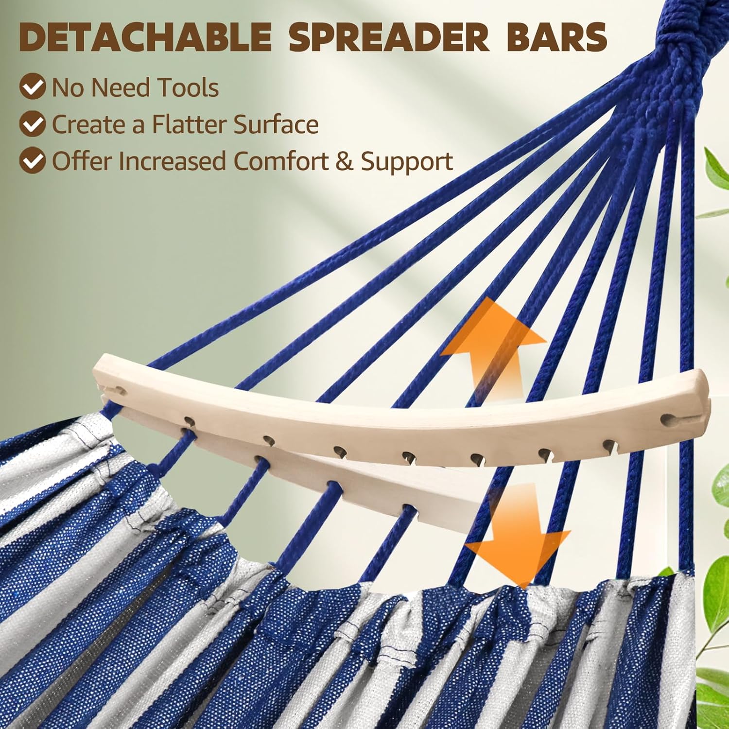 Chihee Cotton Hammock Large Soft Breathable Camping Hammock Holds Up to 660lbs Portable Tree Hammock with Detachable Spreader Bar Pillow 2 Strong Webbings 2 Carabiners Patio Garden Indoor Outdoor