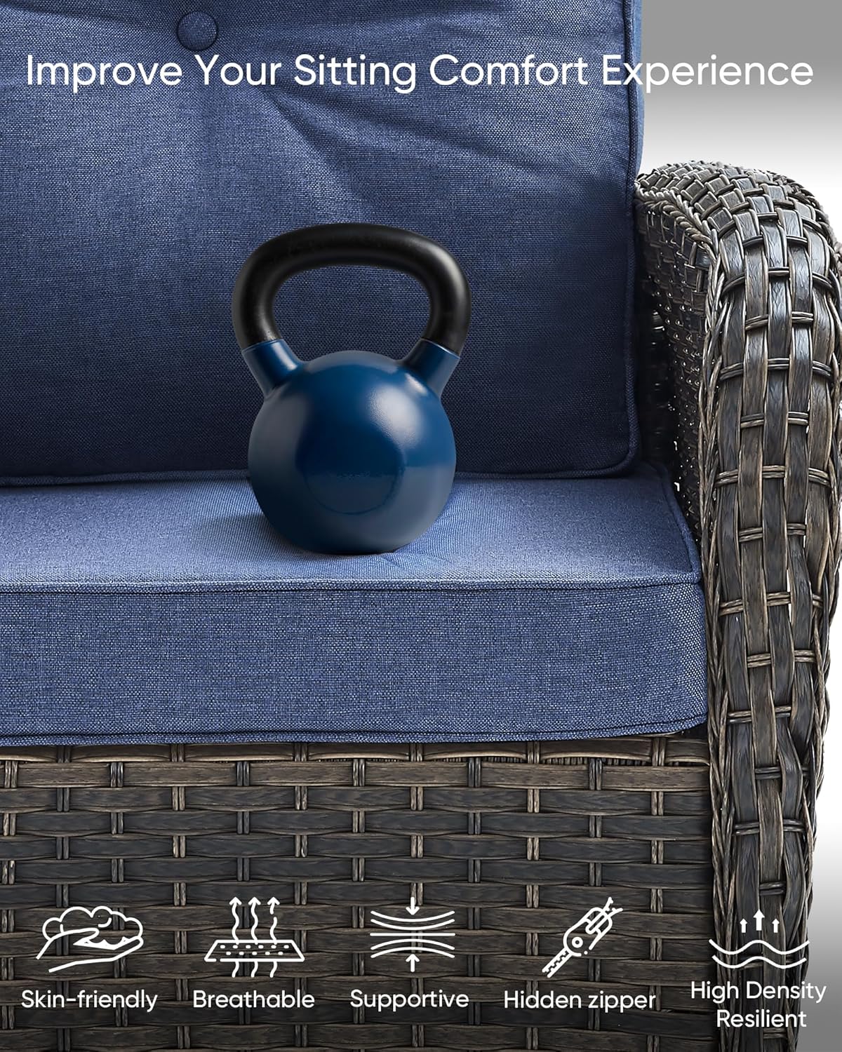- Thick Cushions - Rocking patio chair with thickened cushions give you better support for your whole body, bottom cushion has removable zipper for easy washing, which is easy to clean and gorgeous and durable for long-lasting.