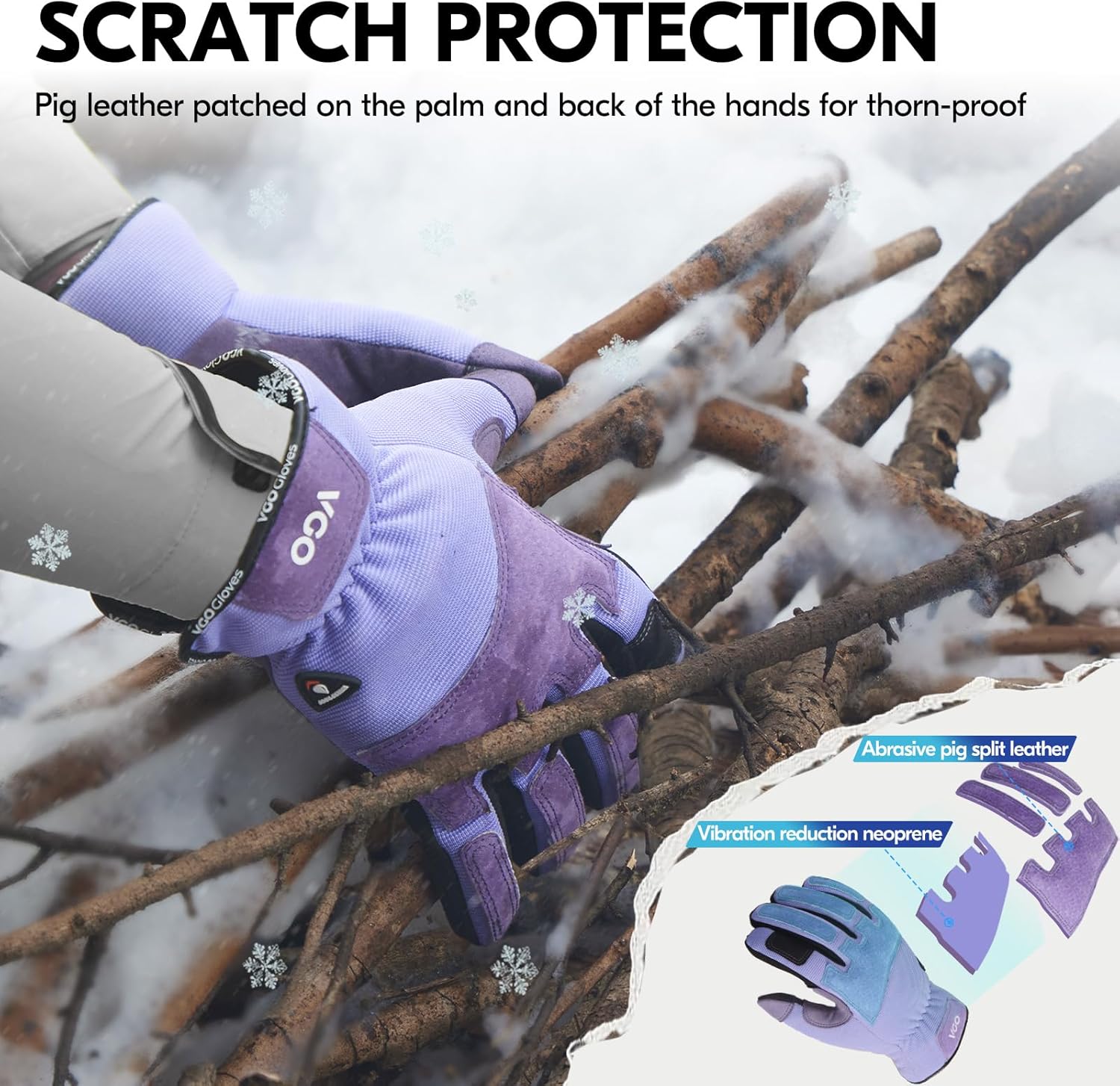 Vgo... Winter Gardening Gloves Women,Safety Work Gloves, Puncture-proof,Thornproof,Touchscreen(1 Pair,S,Purple,SL7471FLWP)