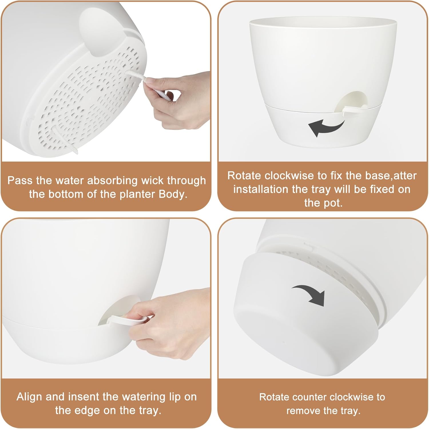 Plant Pots 10/9/8/7.5/7 Inch Self Watering Pots, Set of 5 Plastic Planters with Drainage Holes and Saucers,Plastic Flower Pots,Nursery Planting Pot for Indoor Out Door Plants(Pure White)