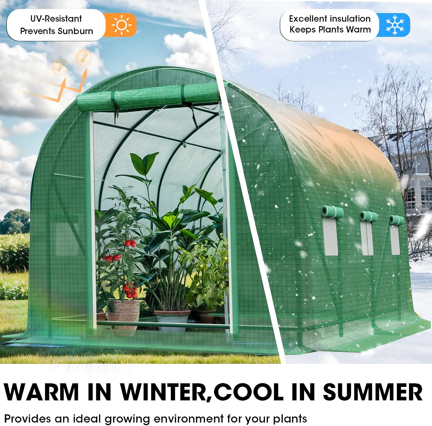 Walk-in Tunnel Greenhouse,Portable Plant Hot Housewith Dual Zippered Screen Doors & 6 Screen Windows Heavy Duty Plastic Plant Warm House with Reinforced Frame (10x7x7 FT)