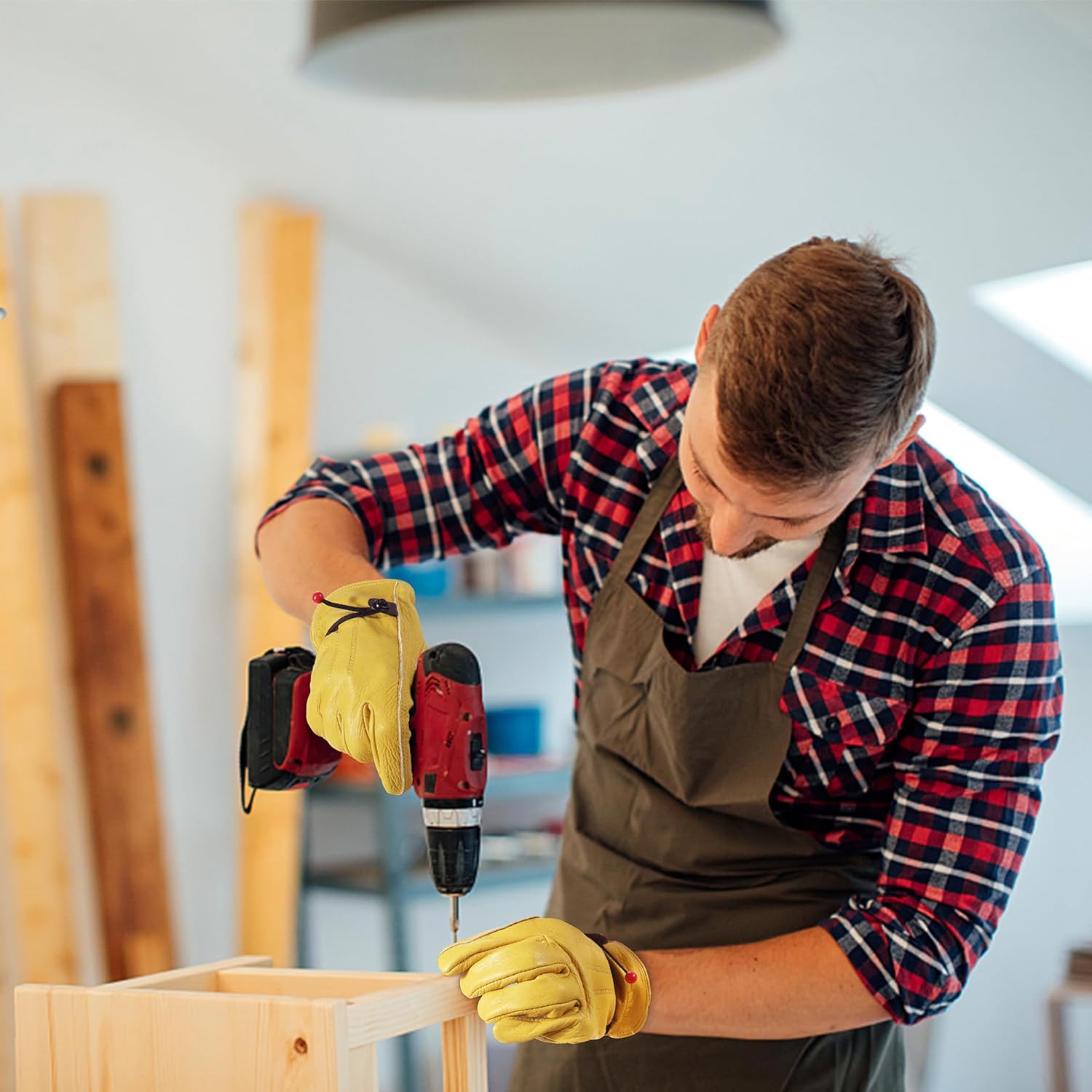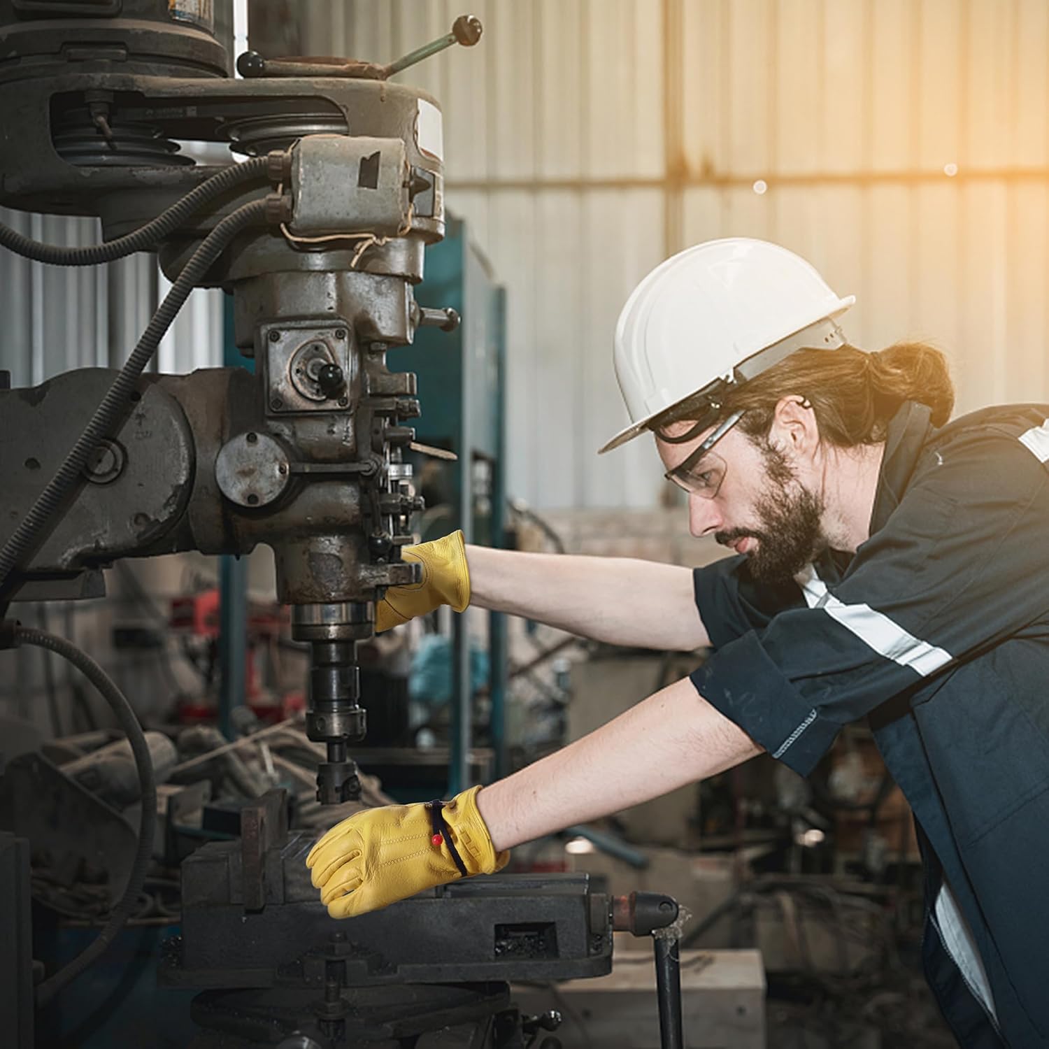 • DETAILS: Soft fitting and thick cowhide material, Excellent stitching process, Ergonomic curved design, make these gloves more perfect, Foldable and not deform. Bright yellow color, Safe and eye-catching, Easy to find it