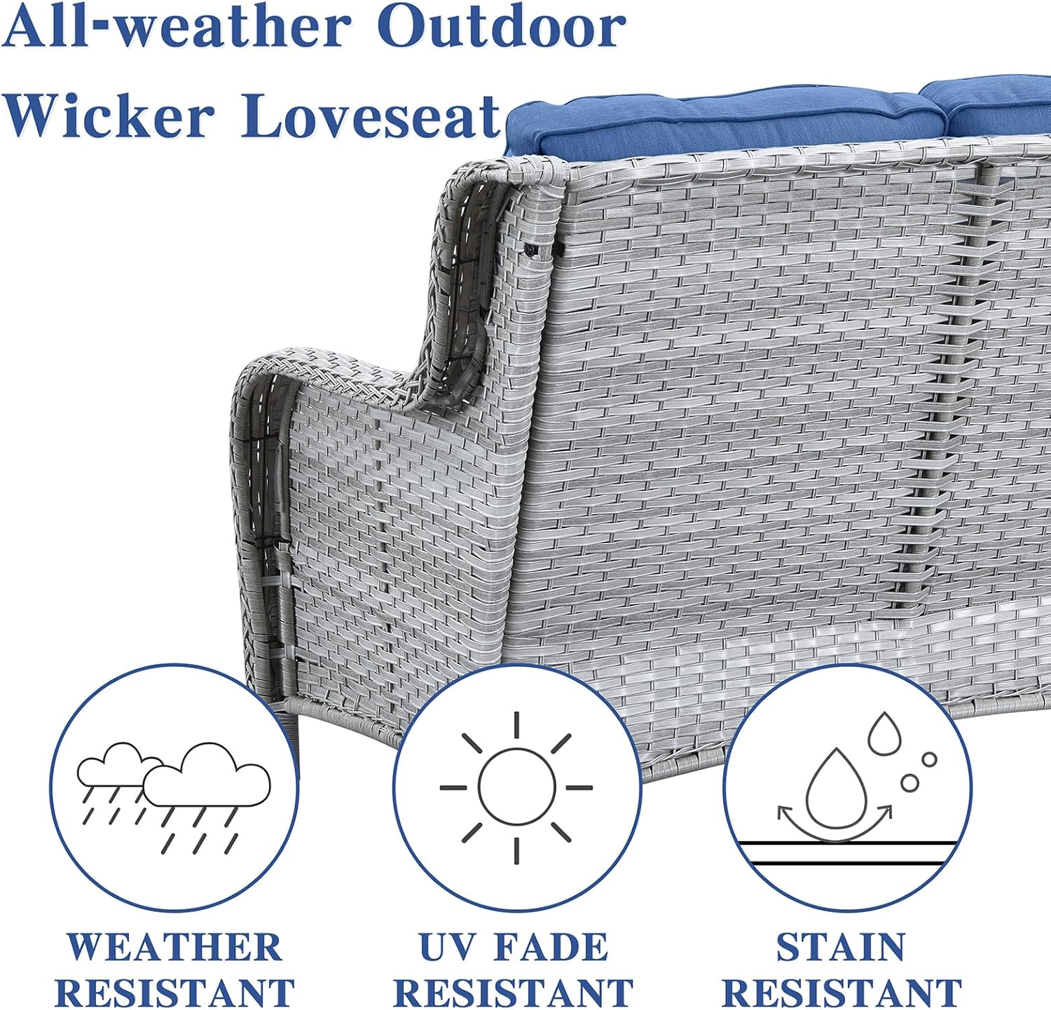 Outdoor Loveseat Small Patio Furniture 2 Seater Sofa Light Grey Wicker Couch Rattan Settee for Single-Family House