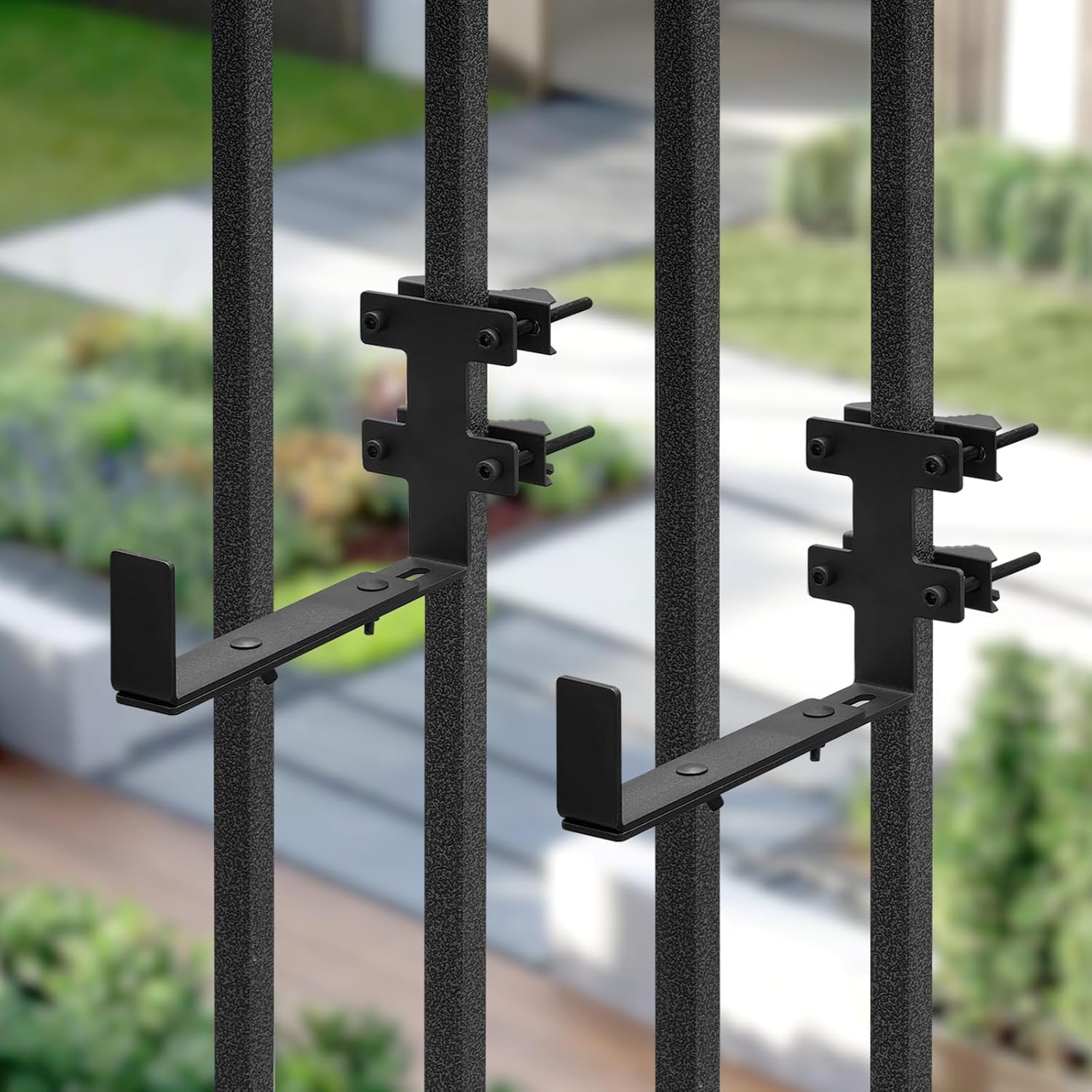 Planter Box Bracket, Flower Box Holder Circular and Square Railings Brackets,Adjustable Deck Railing Planter Box Holder for Patio Garden Fence Pergola Balcony (2 Pieces)