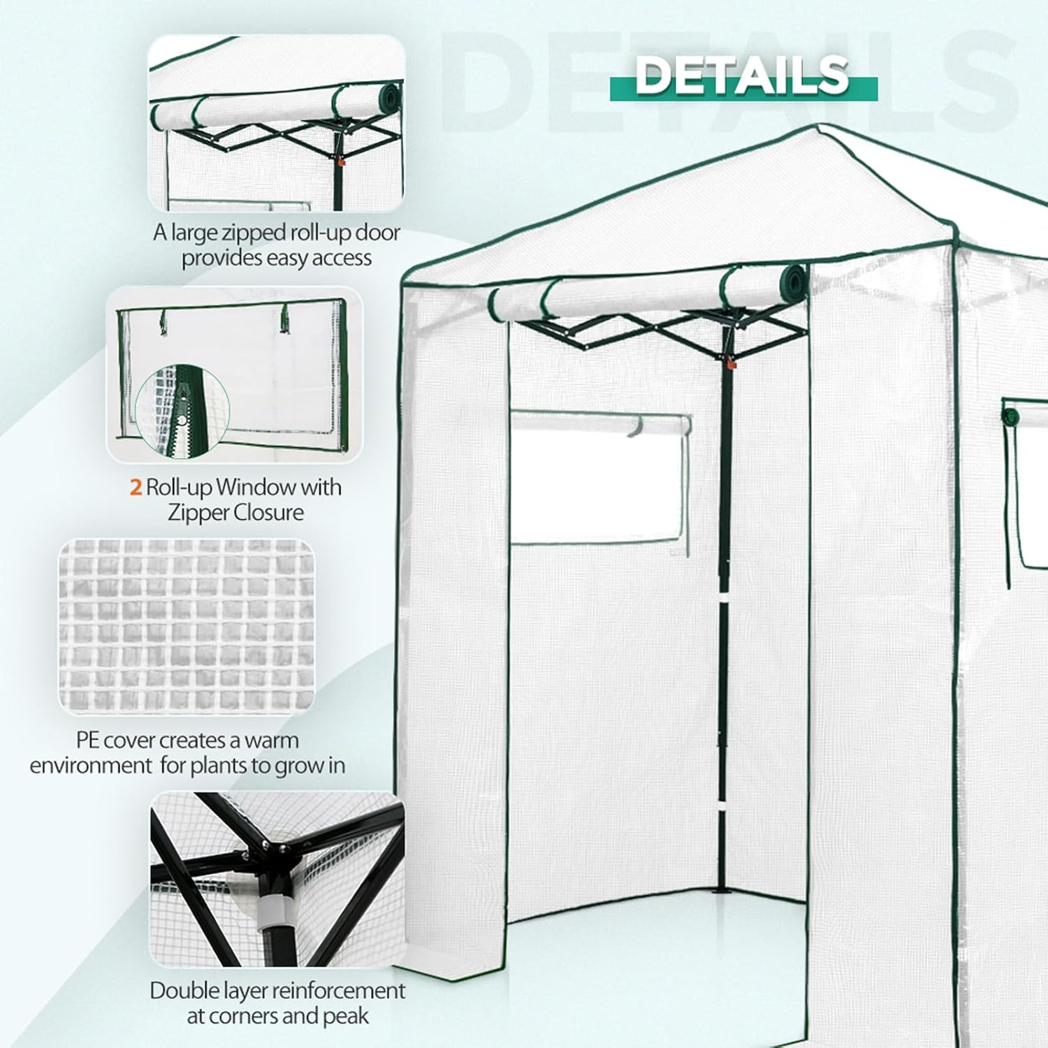 EAGLE PEAK Instant Pop-up Greenhouse, Indoor Outdoor Plant Gardening Green House, Roll-Up Zipper Doors and Side Windows, Walk in 6x4 ft, PE Cover, White/Clear