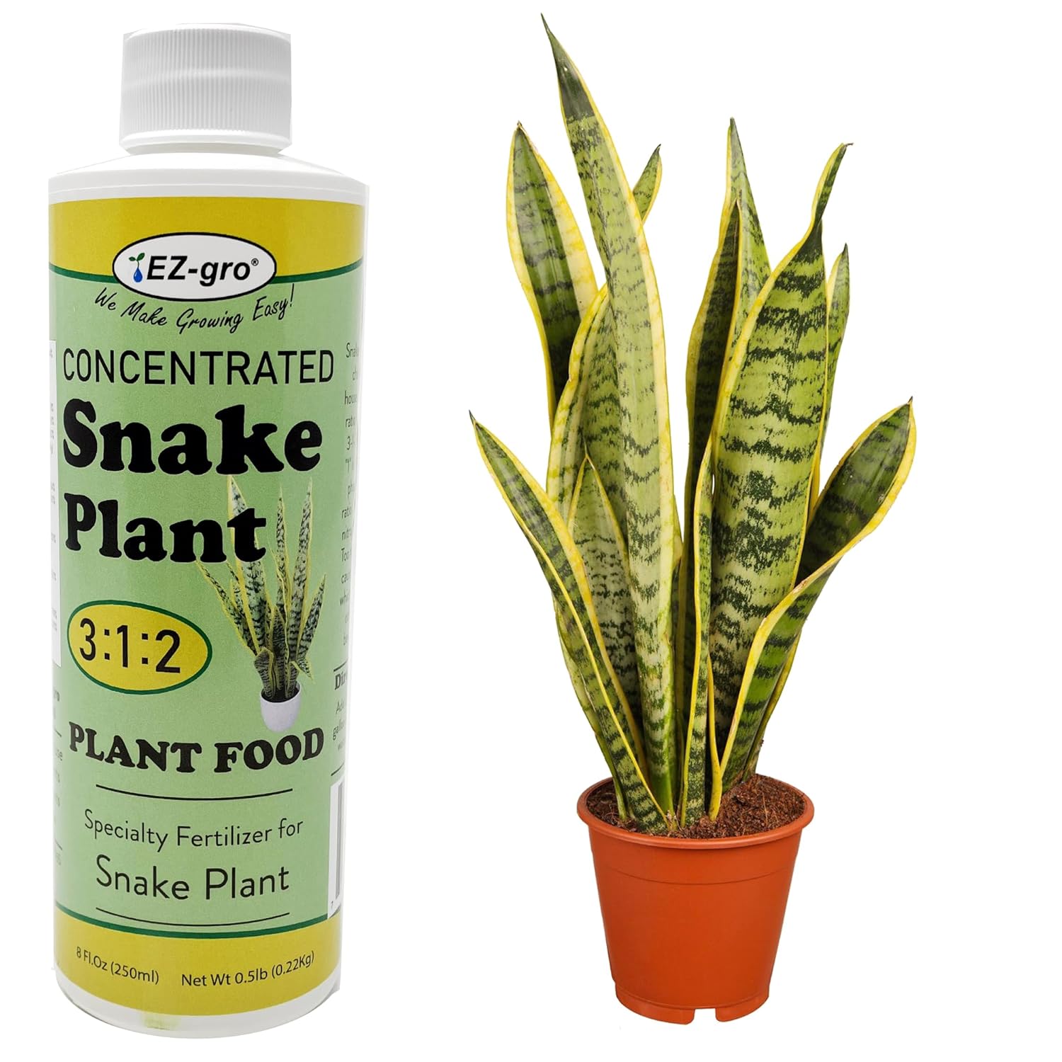 - Professionally made snake plant fertilizer: EZ-gro Liquid Snake Plant Fertilizer offers an ideal 3:1:2 nutrient ratio tailored for indoor tropical plants. This 8 oz concentrated formula is easy to mix, providing balanced nutrition for lush, healthy foliage. Suitable for a range of plants, including snake plants, orchids, and philodendrons.