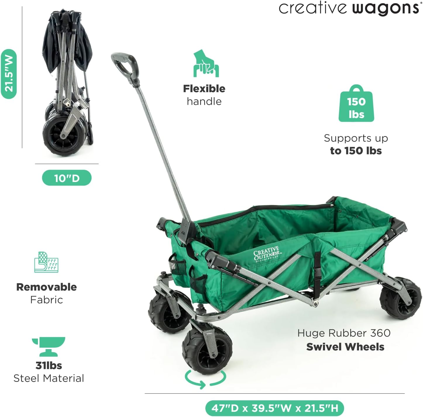 Creative Outdoor All-Terrain Deluxe Wagon | 360 Swivel All Terrain Wheels | Great for Beach, Park, Garden & Tailgate | Multiple Color Options