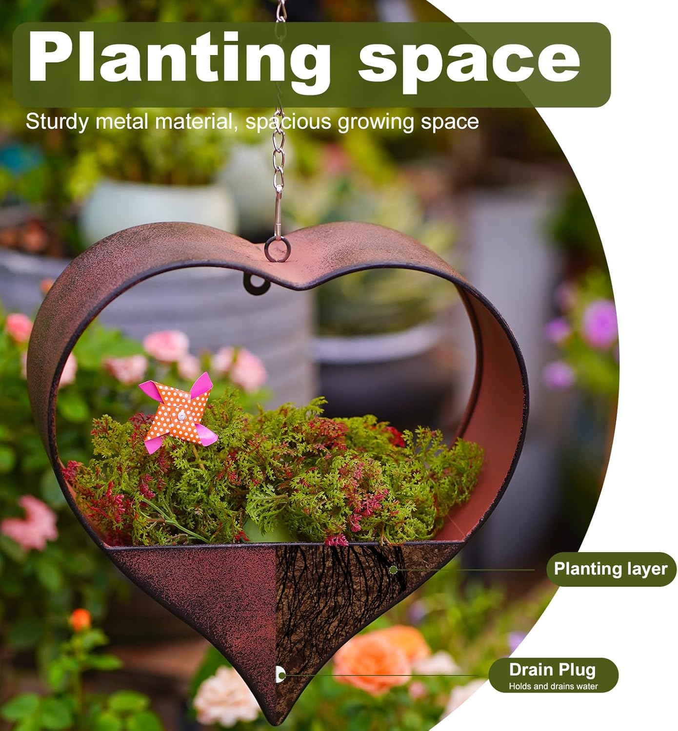 Metal Plant Hangers Indoor and Outdoor: Birthday Gifts for Women Mom Wife Garden Lovers - Rustic Heart Shape Hanging Planters Perfect for Window Wall Living Room Office Decor