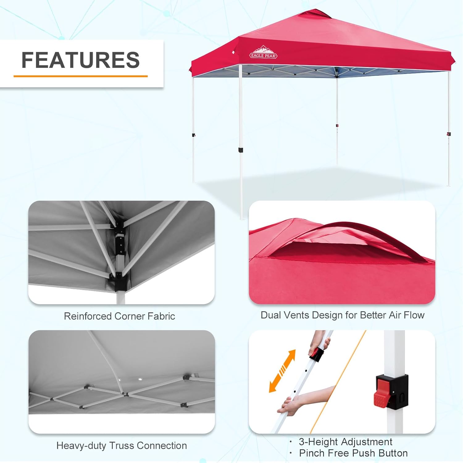 EAGLE PEAK Pop Up Canopy Tent with Wheeled Carry Bag, 8 Stakes, 4 Ropes, 4 Weight Bags, Easy Set Up Tent Canopy, 12x12 ft, 144sqft of Shade, Red