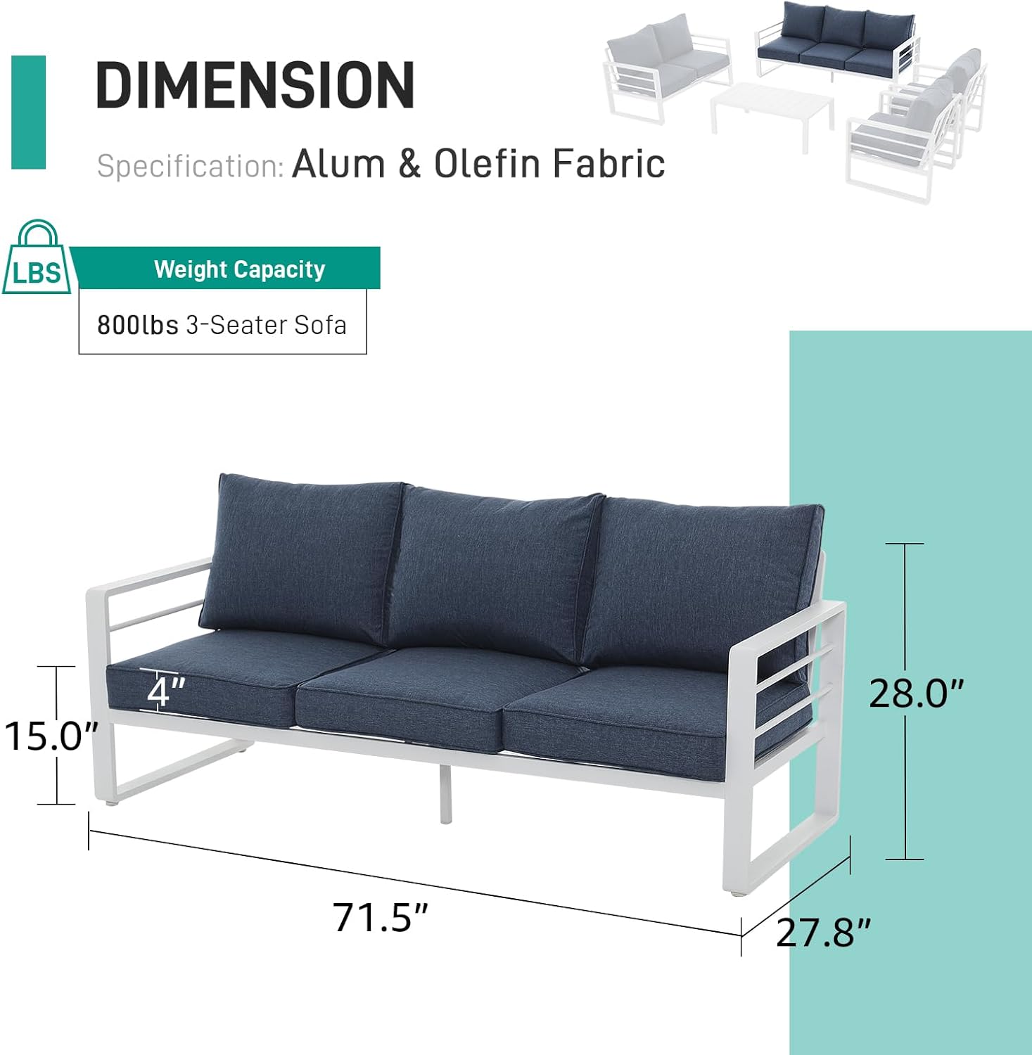 - [Modern Exposed-frame Styling]: Rust-free aluminum exposed metal frames are reinforced with extra welds for added strength and powder-coated for long-lasting durability, which is fade resistant and water resistant. Rustproof screws with plastic cap of the same color are also offered on the aluminum patio furniture collection that‘s designed to stand the test of time.