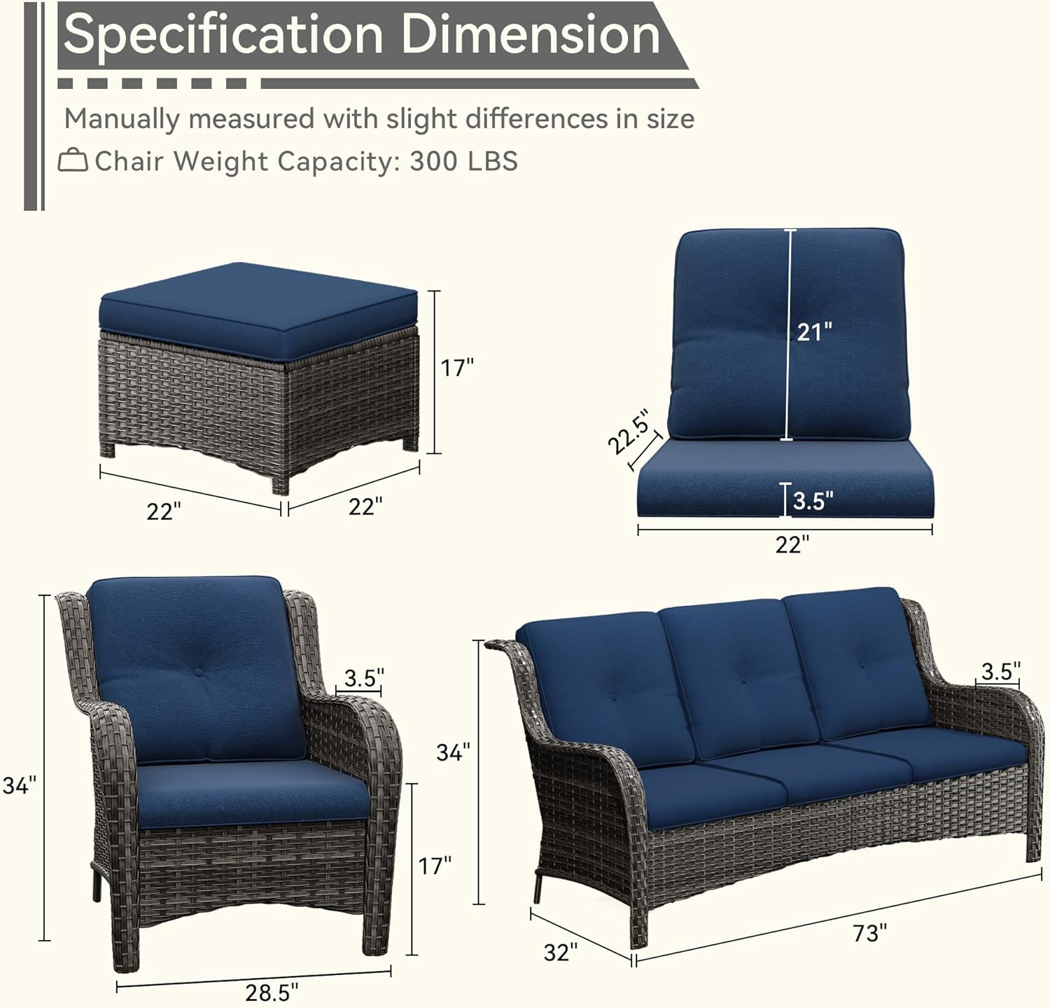 - Heavy-duty Furniture: Each patio wicker chair is able to provide a maximum support of 300 pounds due to the sturdy powder-coated rustproof steel frame, making this set an ideal heavy-duty wicker furniture to your family