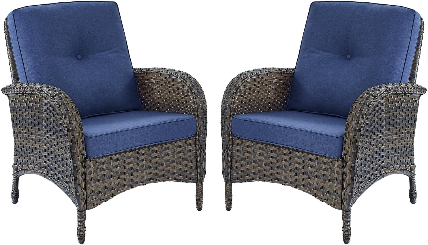 HUMMUH Outdoor Wicker Chairs Patio Dining Chairs Set of 2 with High Back and Deep Seat for Garden,Porch,Backyard,Balcony (Brown/Blue)