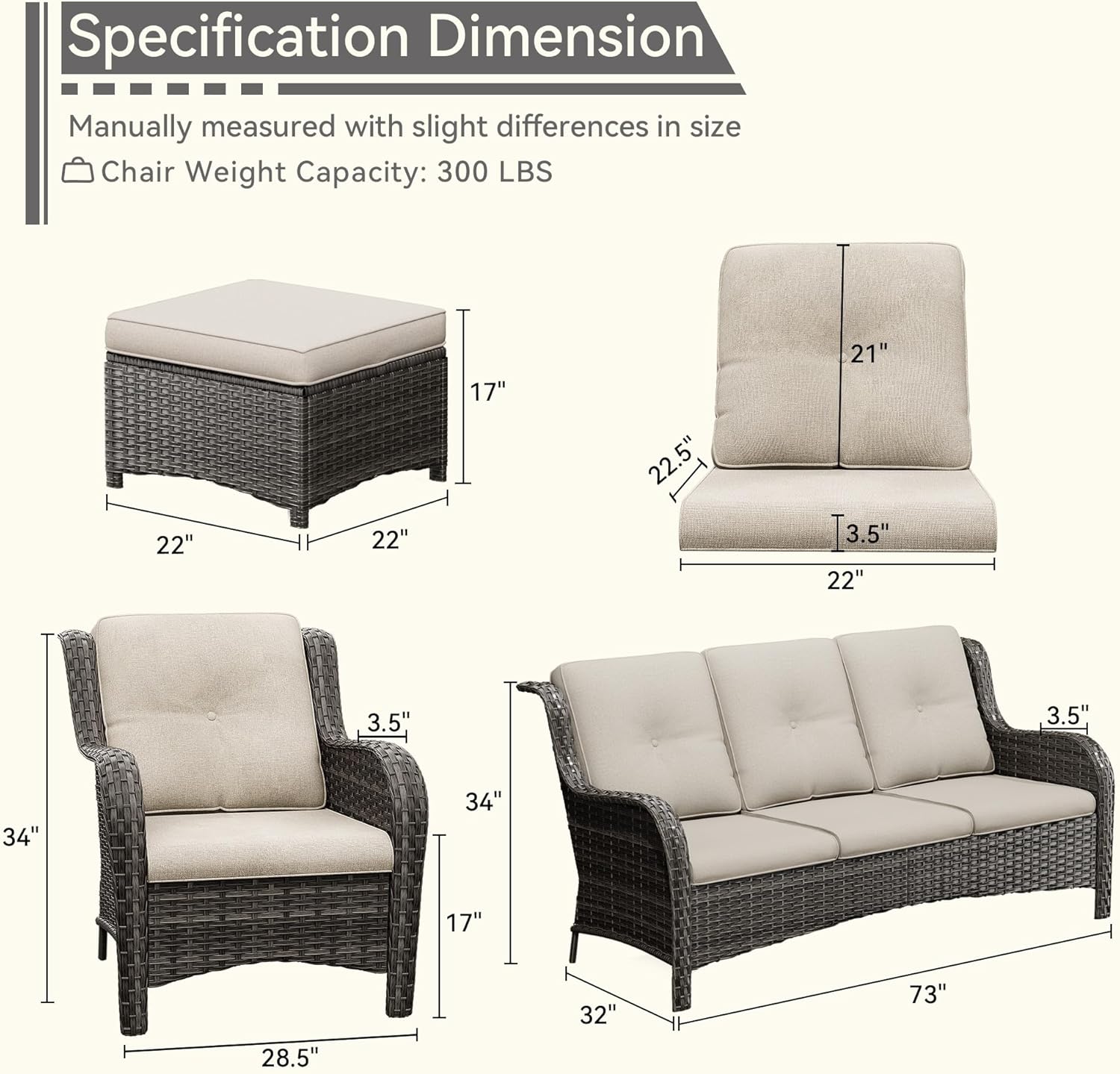 - Heavy-duty Furniture: Each patio wicker chair is able to provide a maximum support of 300 pounds due to the sturdy powder-coated rustproof steel frame, making this set an ideal heavy-duty wicker furniture to your family