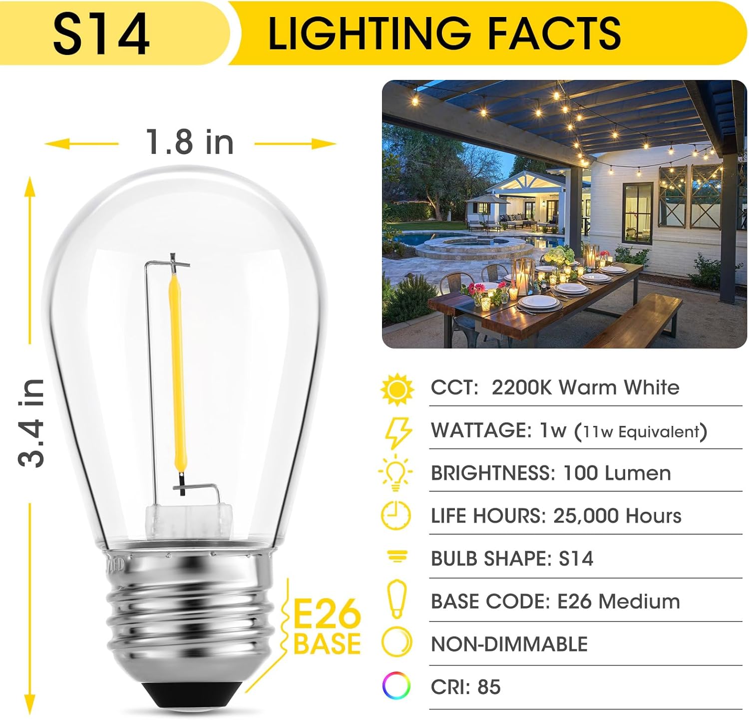 - Special Feature : Equivalent to 11 watt incandescent light bulbs, Outdoor LED string light replacement bulbs