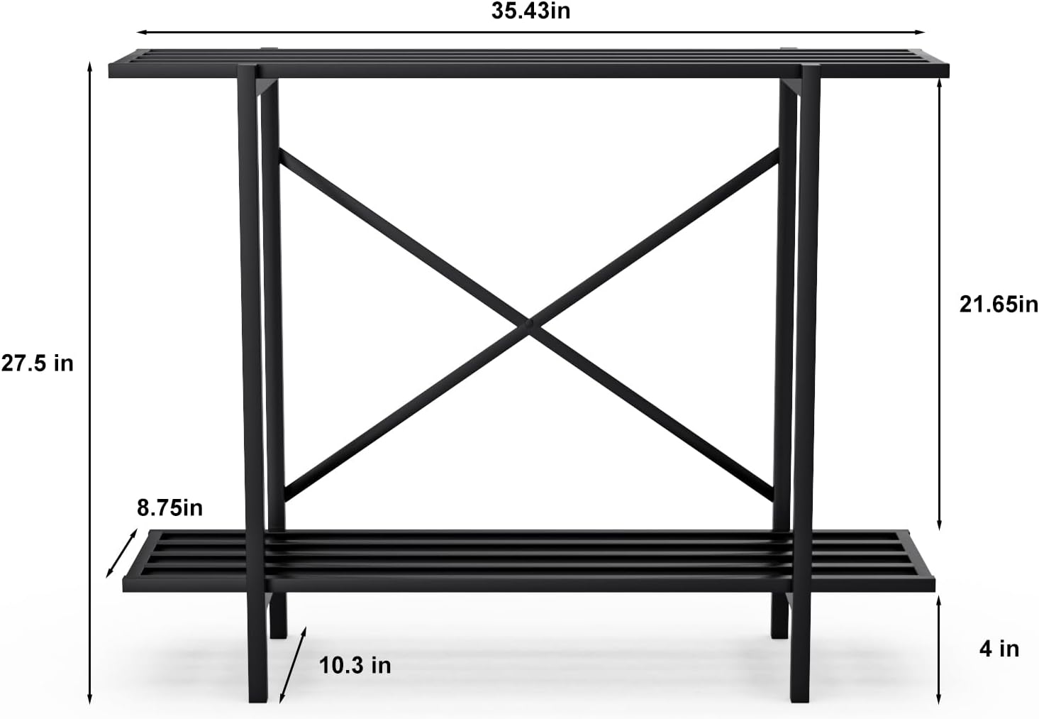 Zhongma 2 Tier Metal Sturdy Heavy Plant Stand, Narrow Plant Stand Indoor and Outdoor, L35.43 x W10.3 x H27.5 inch, 440 LBS Capacity & Heavy Duty Construction