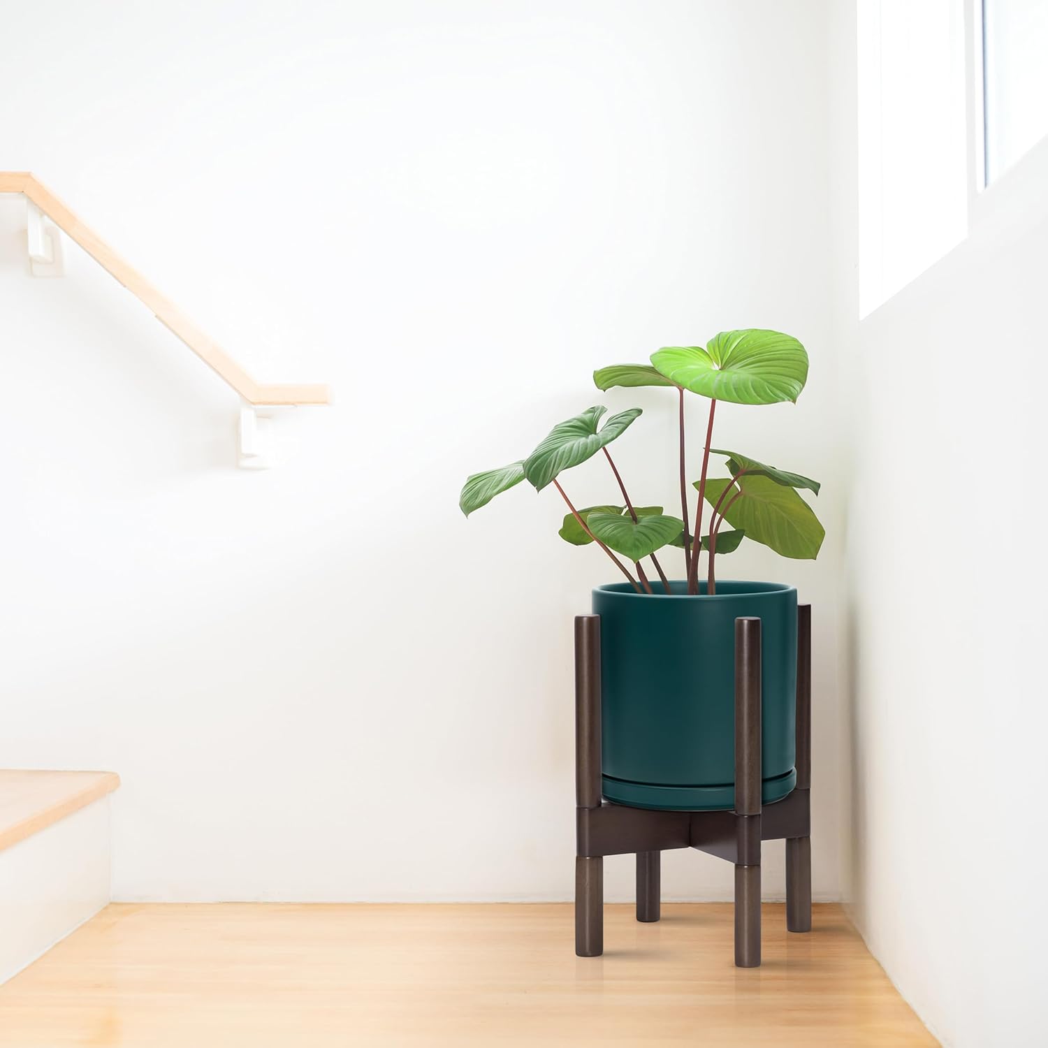 - A Complete Set: Mid-century ceramic planter, combined with a sculptural, solid wood stand that match perfectly together and looks great in anywhere.