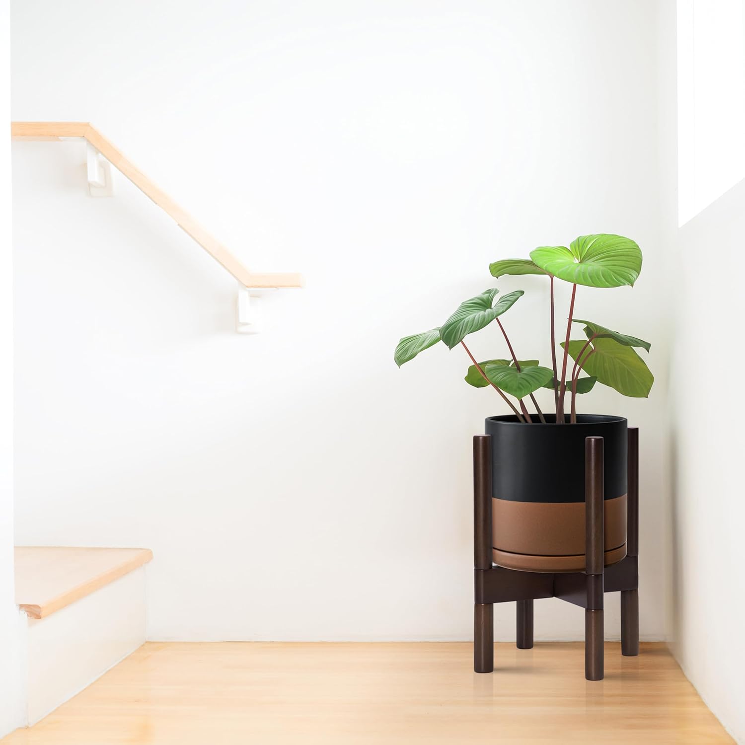 - A Complete Set: Mid-century ceramic planter, combined with a sculptural, solid wood stand that match perfectly together and looks great in anywhere.