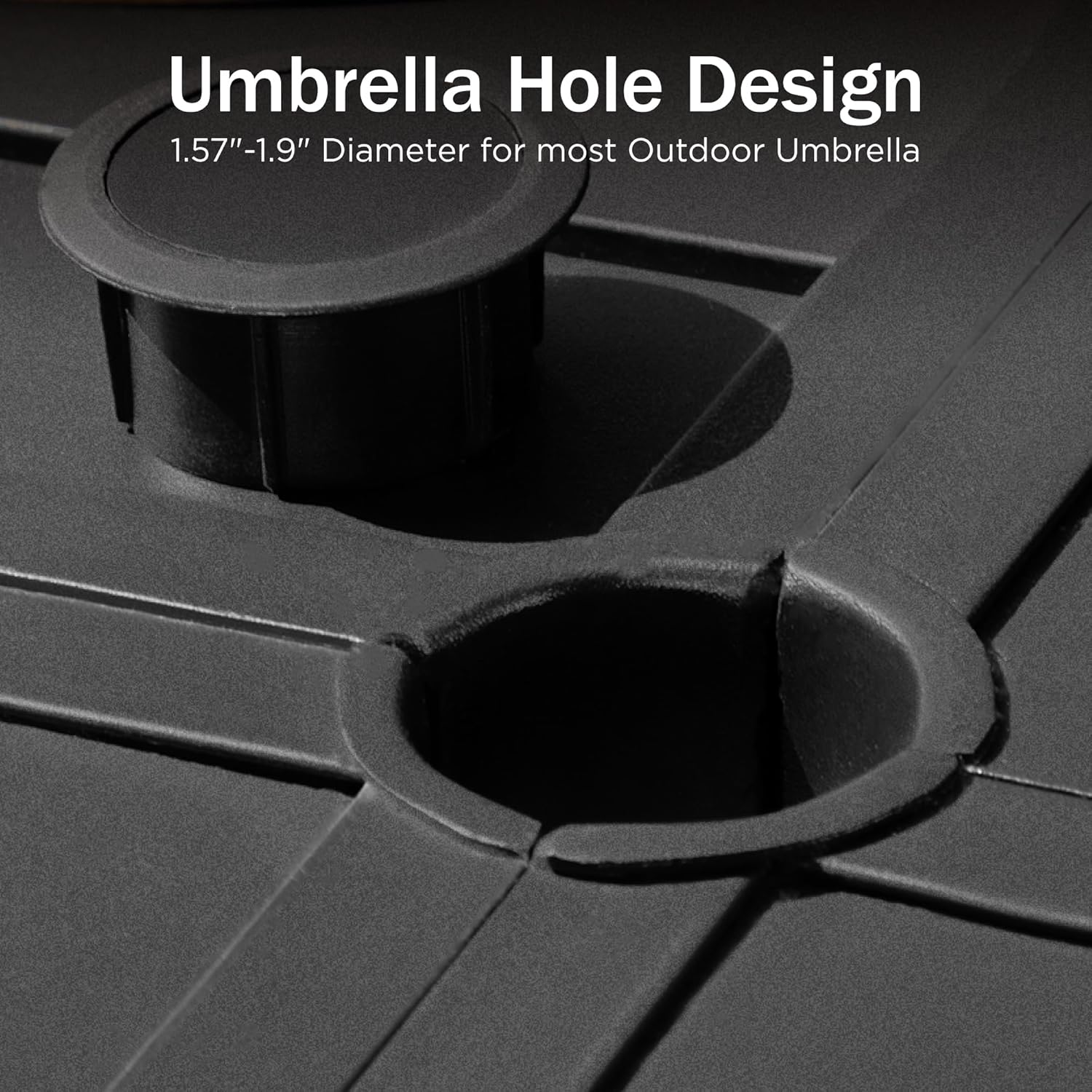 - Adjustable Umbrella Hole: The adjustable umbrella hole is 1.59β-1.9β, You can resize the hole by changing the cap. And the underside of our table is equipped with a sturdy metal ring to lock the umbrella pole in place. The umbrella holes fit most sizes of umbrellas on the market.