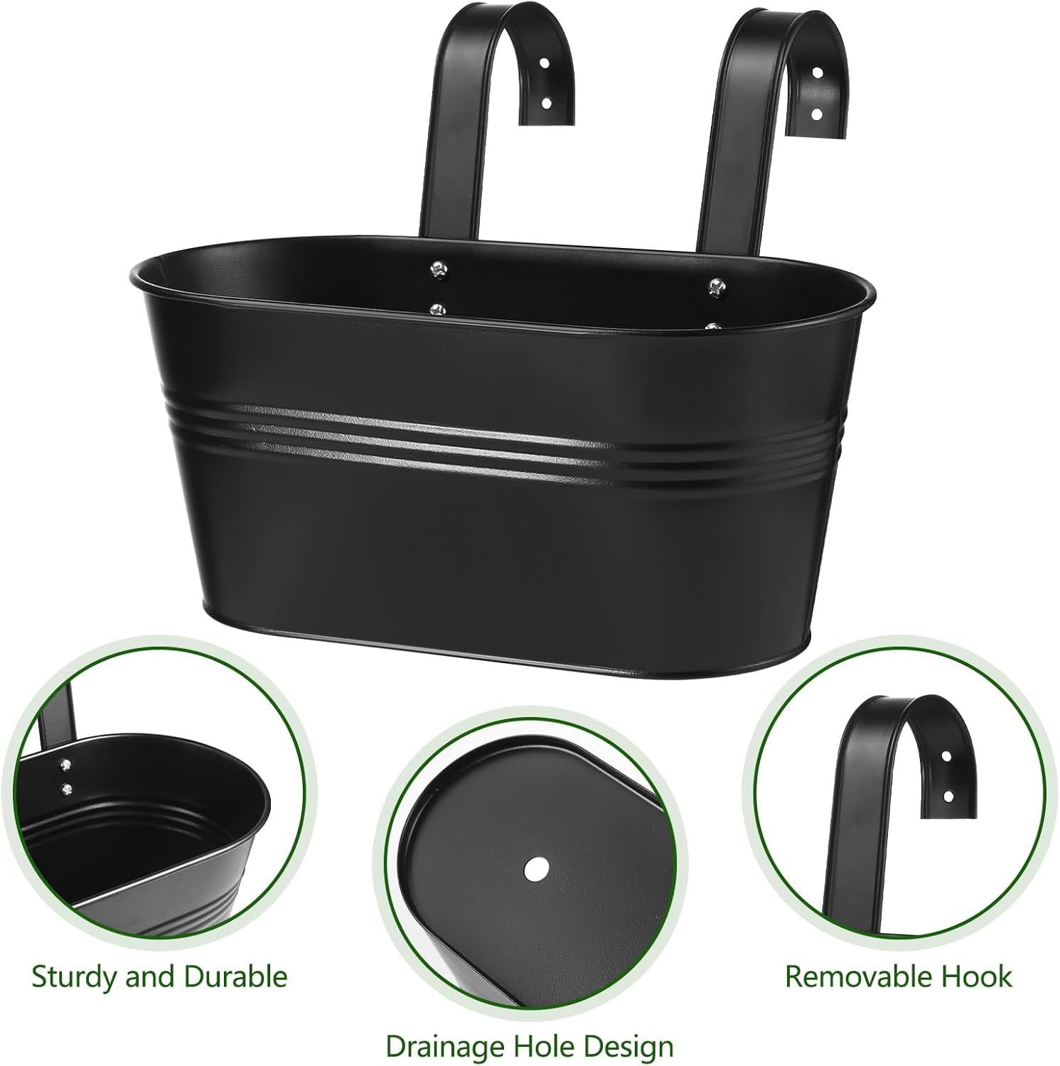 - 【Easy to Use】The large oval pots comes with 2 hooks, In order to increase the bearing capacity of the pot and make it more stable and reliable, the hook is fixed with screws, and we are intimately equipped with a mounting screwdriver. The bucket planter comes with 1 hook, insert the hook into the card slot and the installation is complete.