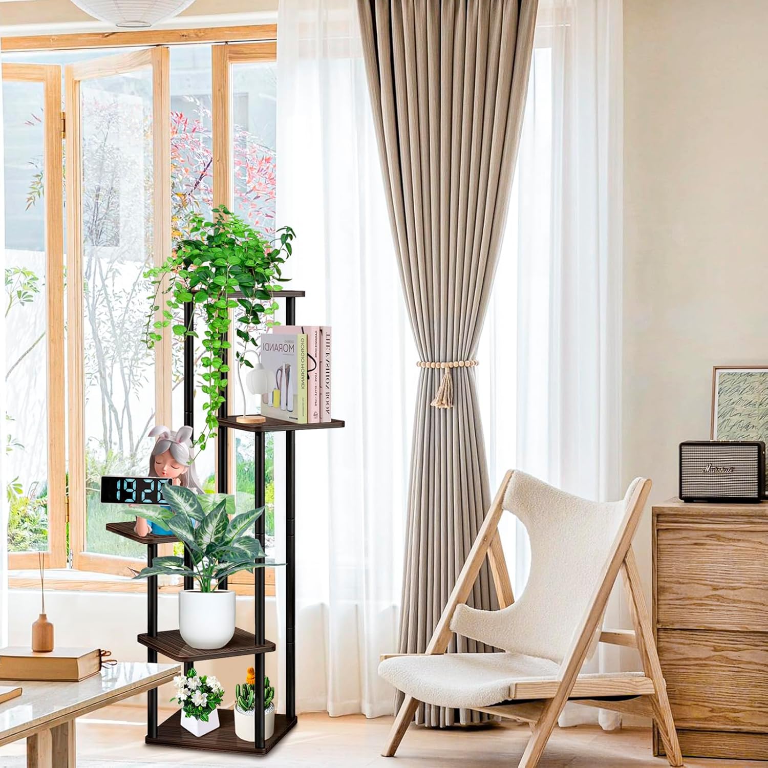 5 Tier Wood Tall Plant Stand Metal Rack Indoor, Multiple Flower Pot Holder Shelves Corner Rack, Planter Shelf Display Rack Storage Organizer for Patio Living Room Balcony Garden(Black Oak)