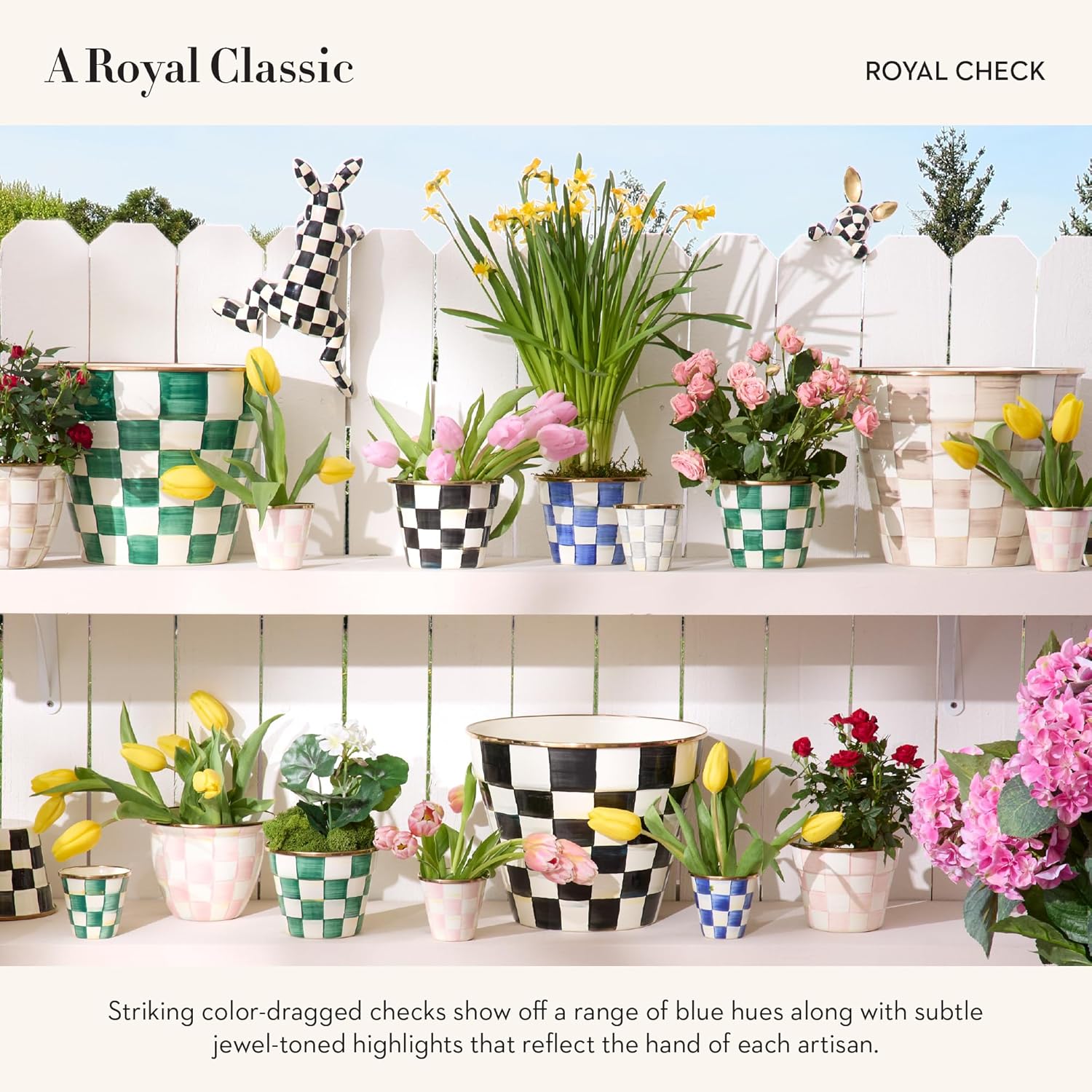 MACKENZIE-CHILDS Enamel Garden Pot, Decorative Pot for Plants, Outdoor Flowerpot Decor, Small, Blue-and-White Royal Check