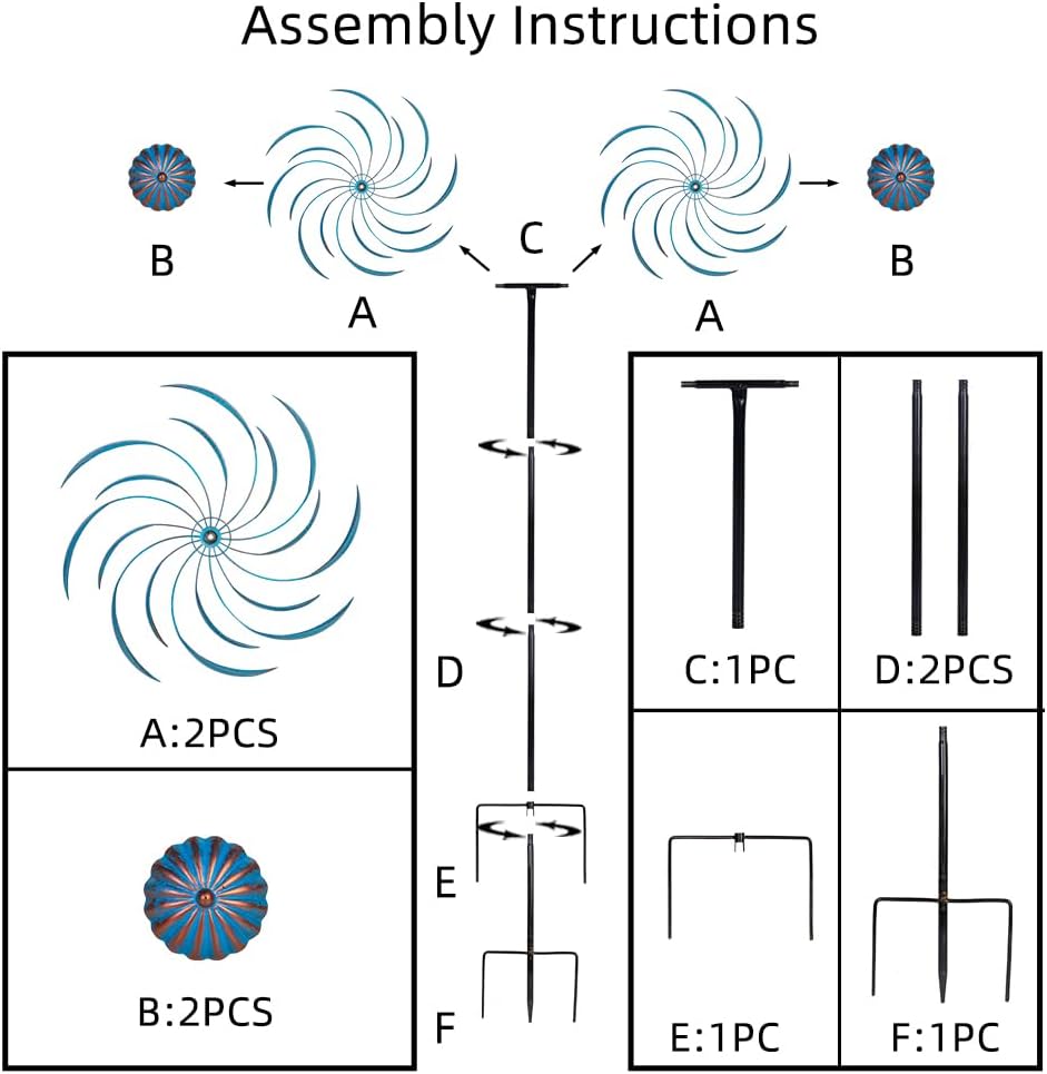 - Easy to Assemble:This wind sculptures is easy to assemble with the instructions and no additional tools.Note please install the pole then install the windmill blades ,which is easier to assemble