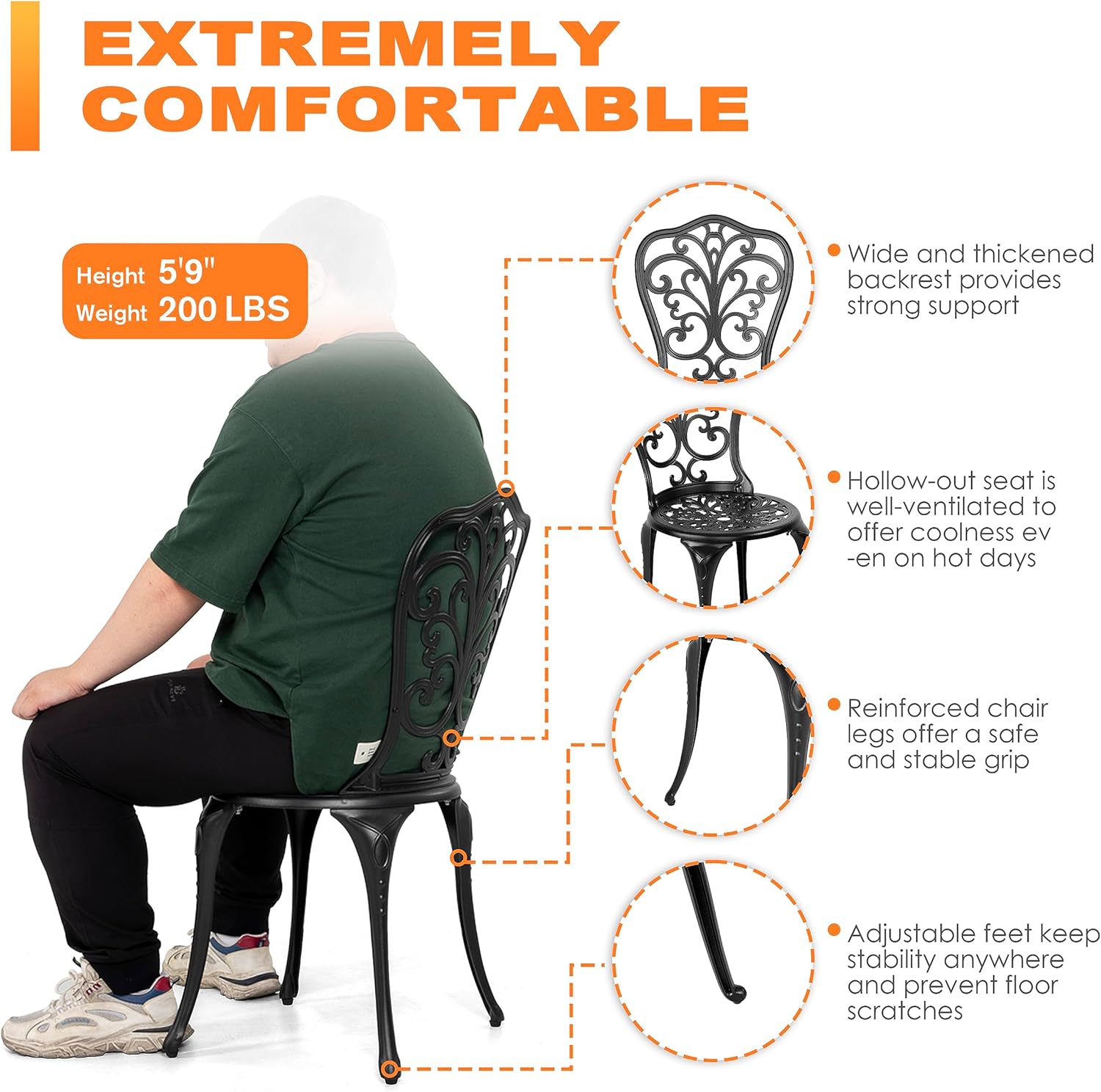 - ADJUSTABLE FOOT PADS: The anti-slip foot caps of the bistro set keep stability anytime and anywhere and prevent unwanted sliding and floor scratches