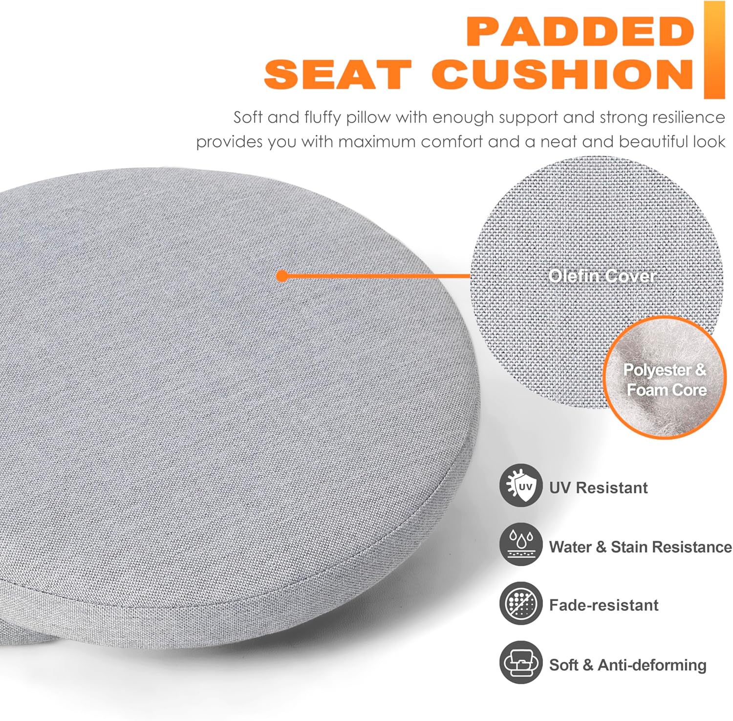 - ERGONOMIC DESIGN WITH CUSHIONS: Ergonomic back and curved armrests provide excellent support for your arms and back, 1.2" thickness soft cushions with fade-resistant polyester fiber covers and straps offer a comfortable sitting experience for long hours of chatting