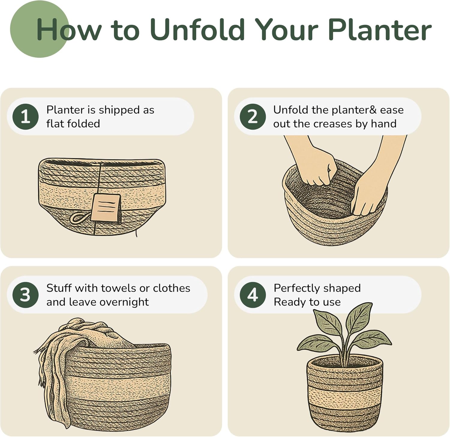 - COMES IN FLAT PACKAGING - EASY TO RESHAPE : Please Note - These planter covers are flat-packed for efficient shipping. To restore their original shape, simply stuff them with soft items like napkins, towels, or clothes and let them sit overnight. This helps the baskets regain their form, giving your plants a clean and decorative look.