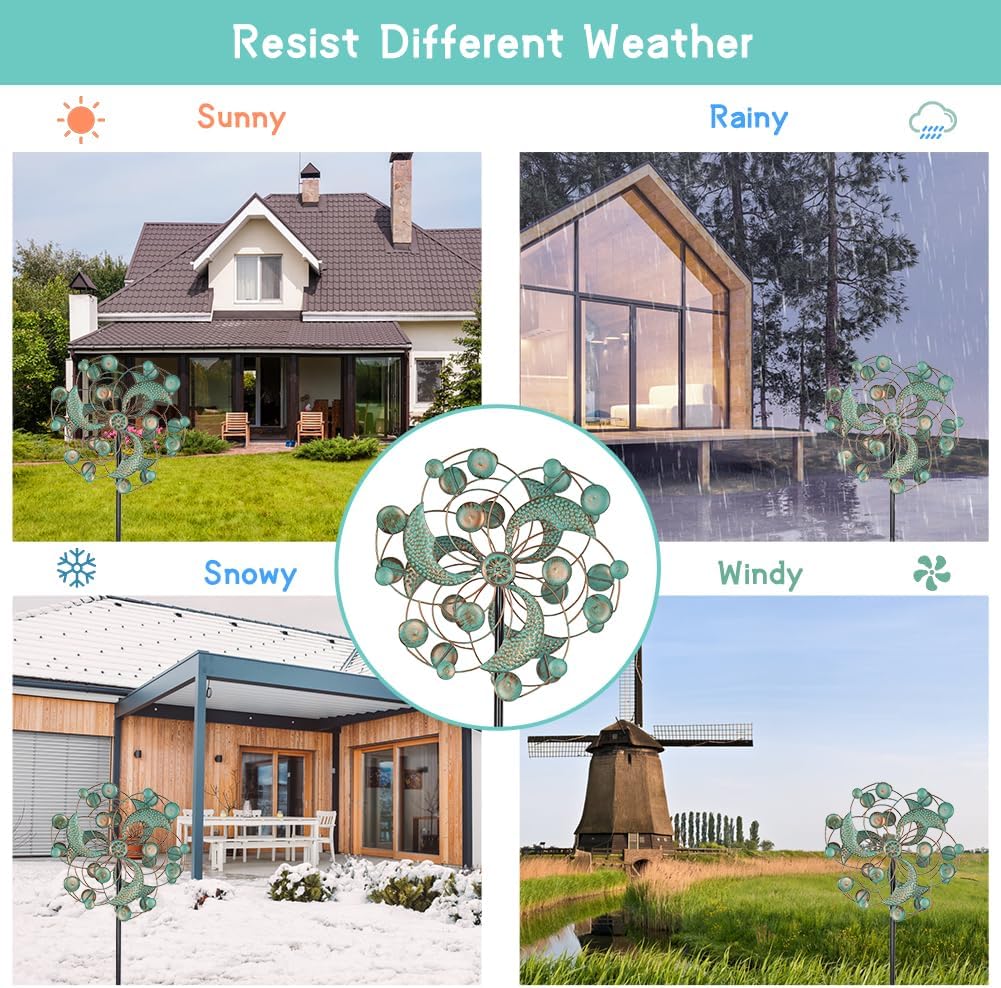 - Design: This Wind Spinner features two intricately designed spinning blades, each crafted with precision and detail to emulate natural beauty and fluidity, this garden spinner can elevate your lawn, patio, or yard decor, offers a dynamic and interactive experience, thereby adding depth and movement to your outdoor space.