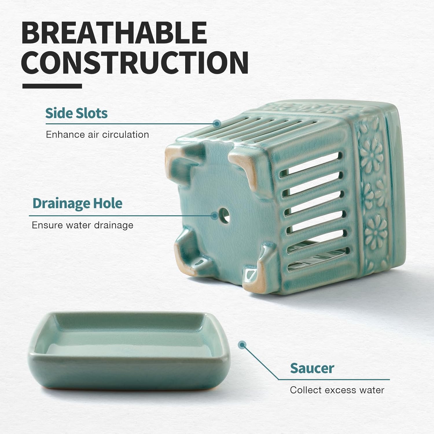 - 【Elegant Design】Unique carved patterns make this orchid pot stand out. Fully glazed with improved air circulation through aeration holes on the front and back.