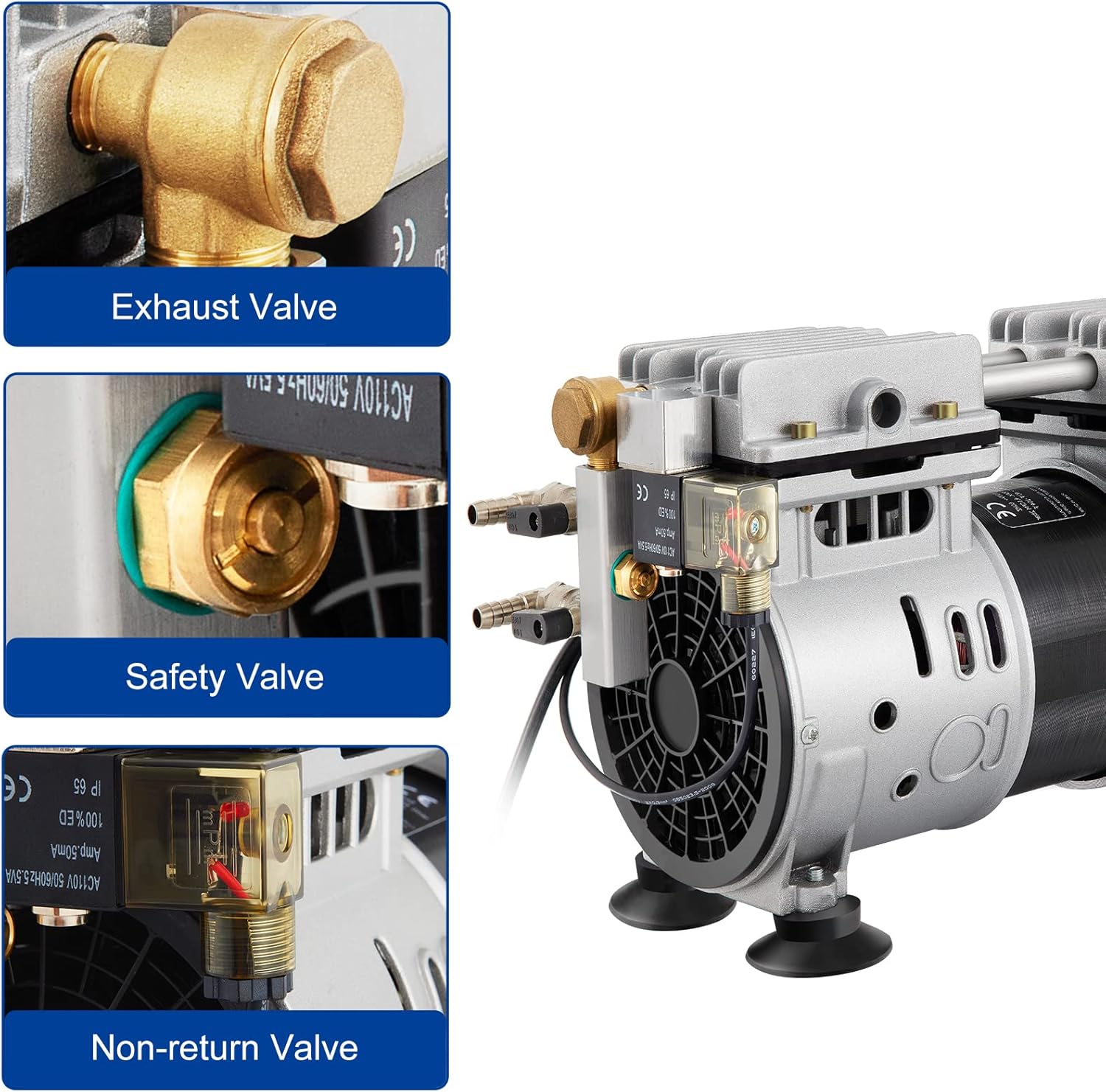 - 【High Performance】Oil-free & rocking piston air compressor would generate heat normally on working state, built-in thermal sensor with the function of 275℉ over heat protection; The machine is made of corrosion-resistant aluminum alloy, which has good heat dissipation effect