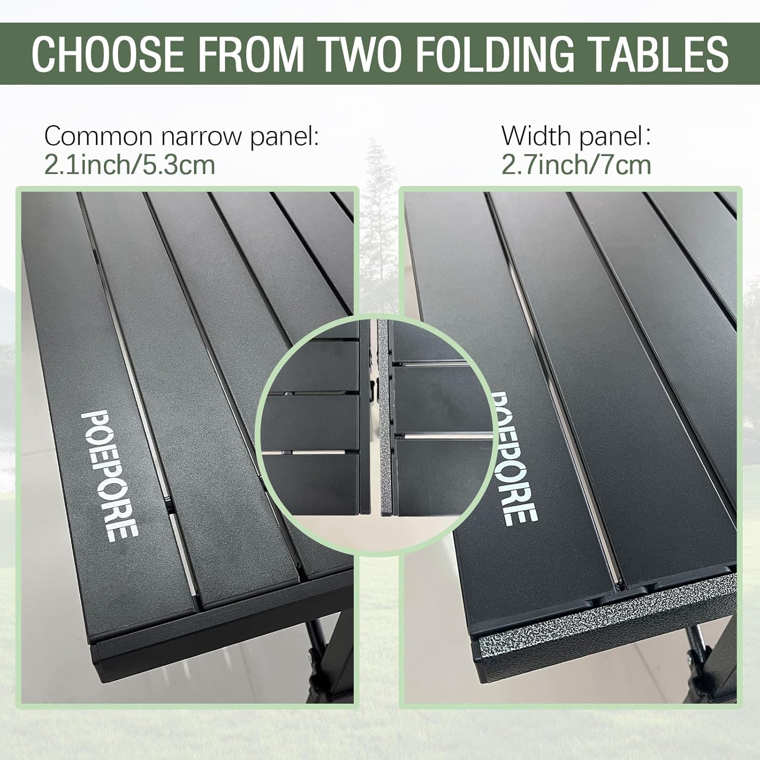 - Suitable for 4-6 people:POEPORE camping table measures 55.1*27.55*27.55 inches when unfolded and 35.4*10.2*6.3 inches when folded. It weighs 18.74 pounds. It can accommodate 4-6 people and is suitable for family and friends gatherings. Make sure there is enough room for everyone to eat together and have a good time.